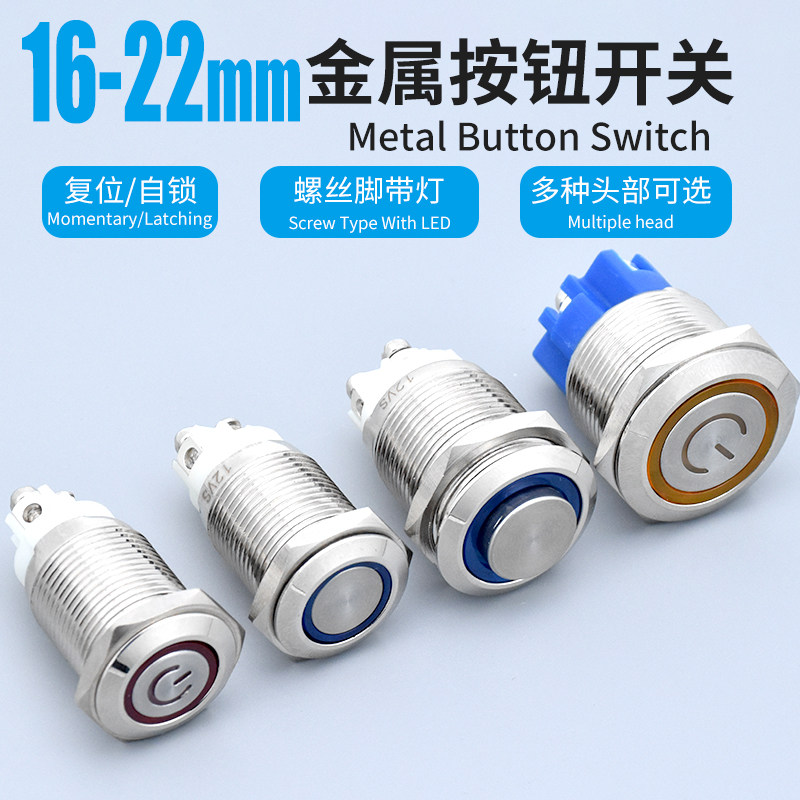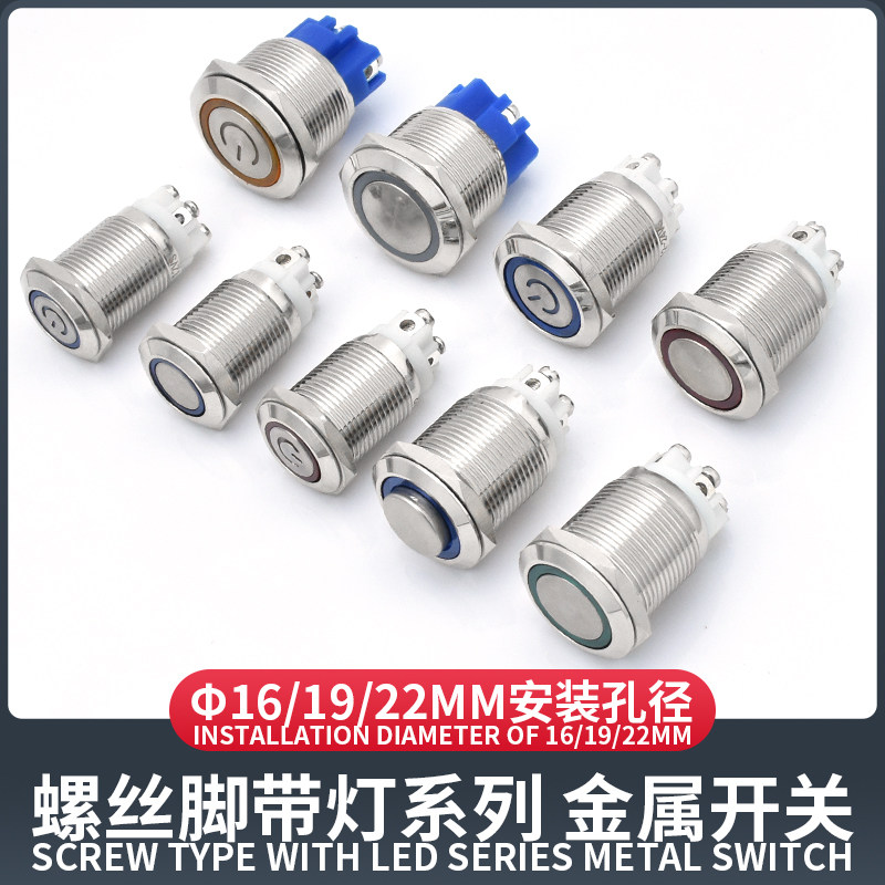 📚 螺丝脚带LED灯金属按钮开关自锁复位点动喇叭圆形按键16 19 22mm