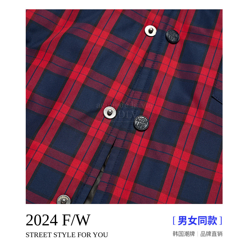 📚 ADLV韩国潮牌秋季polp衫长袖衬衫式条纹格子外套男女同款翻领上衣