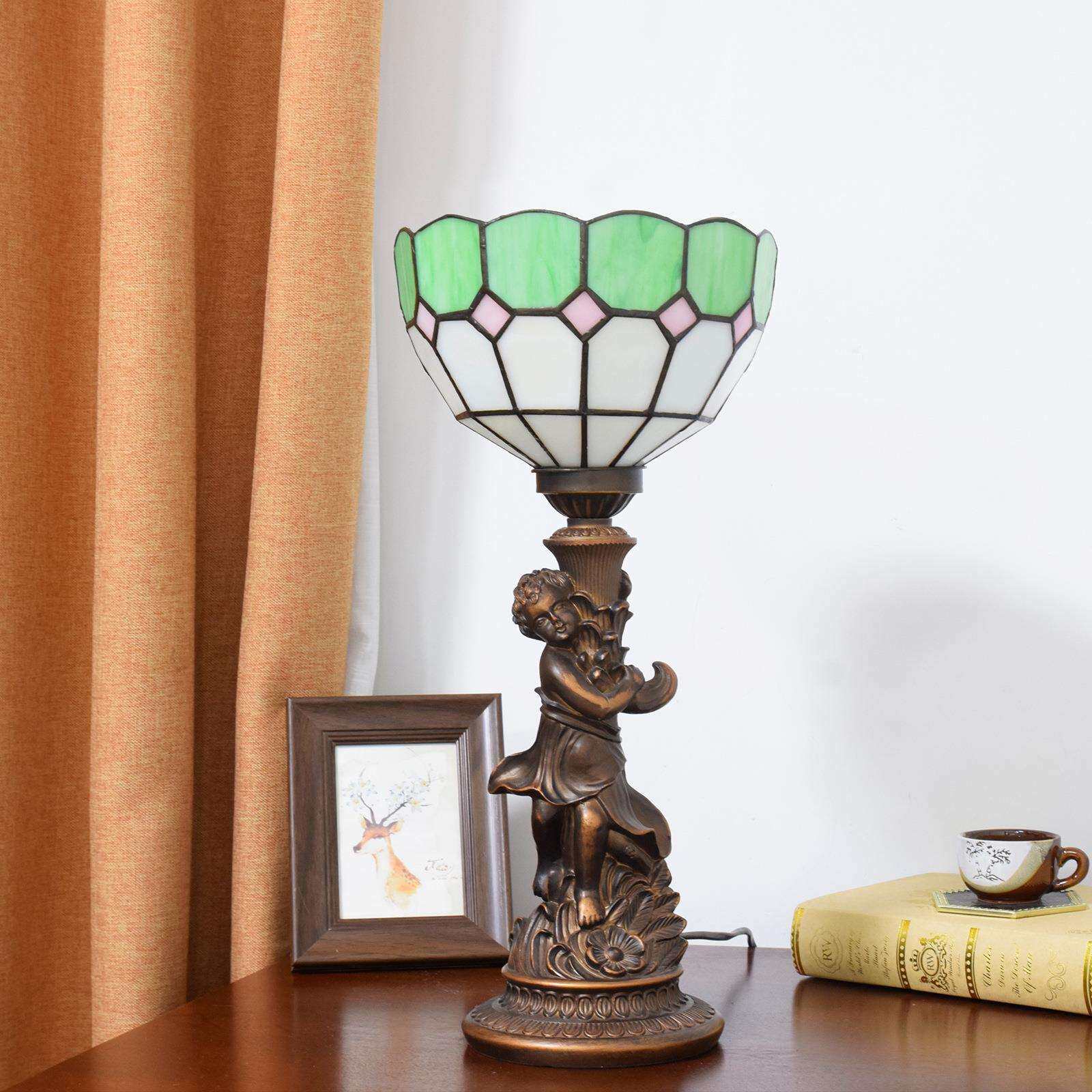 📚 绿色地中海风格小男孩彩色玻璃灯餐厅酒吧书桌装饰台灯卧室床头灯