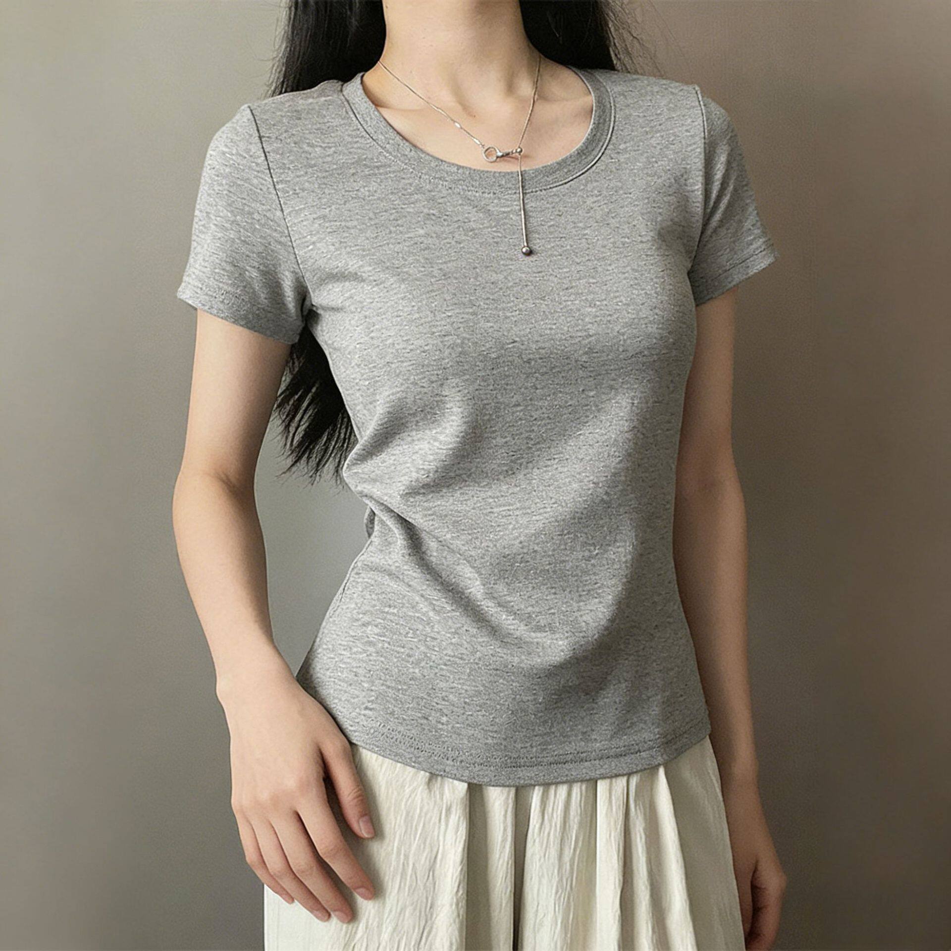 📚 高品质薄款2026白色修身正肩短袖体恤女t恤圆领内搭打底衫上衣夏