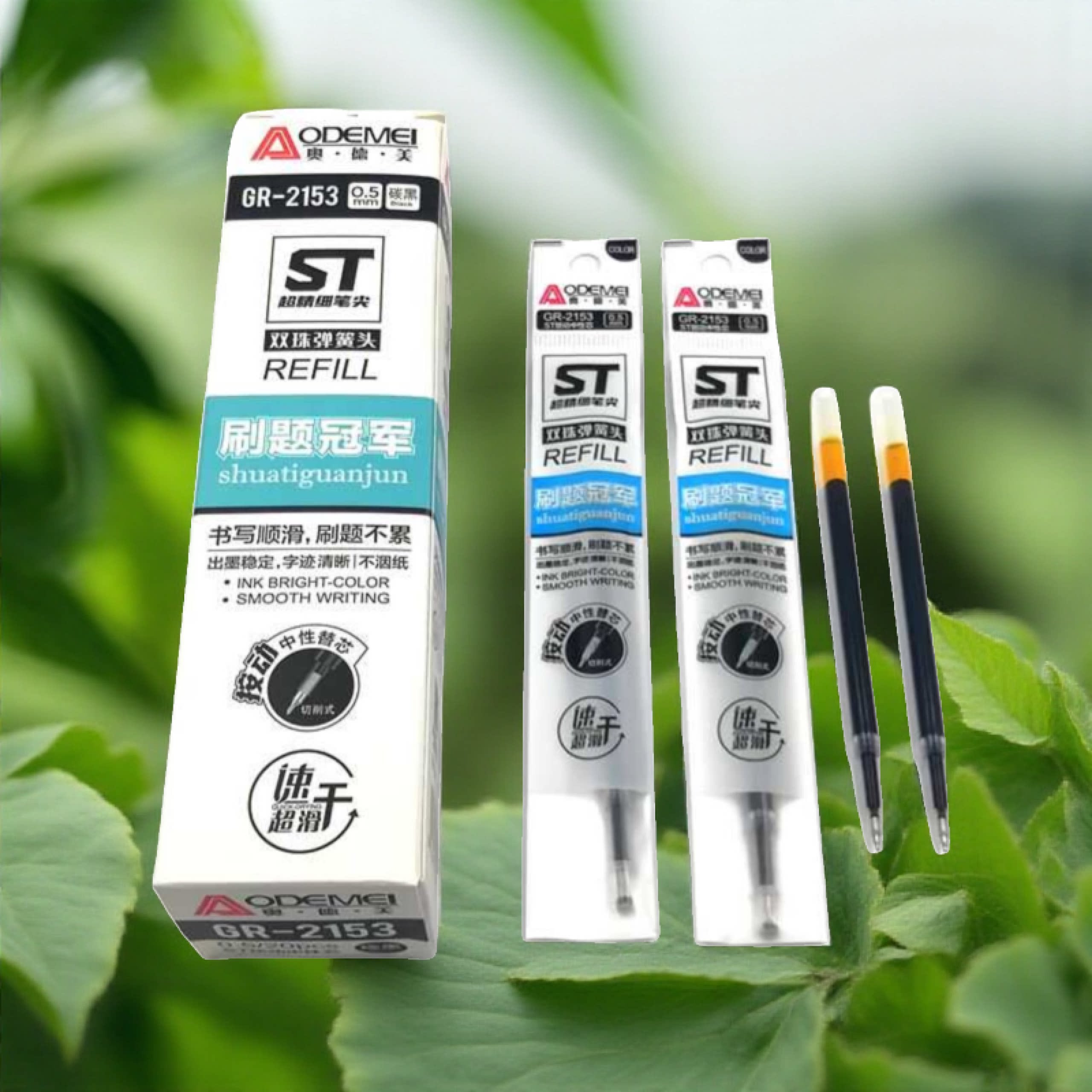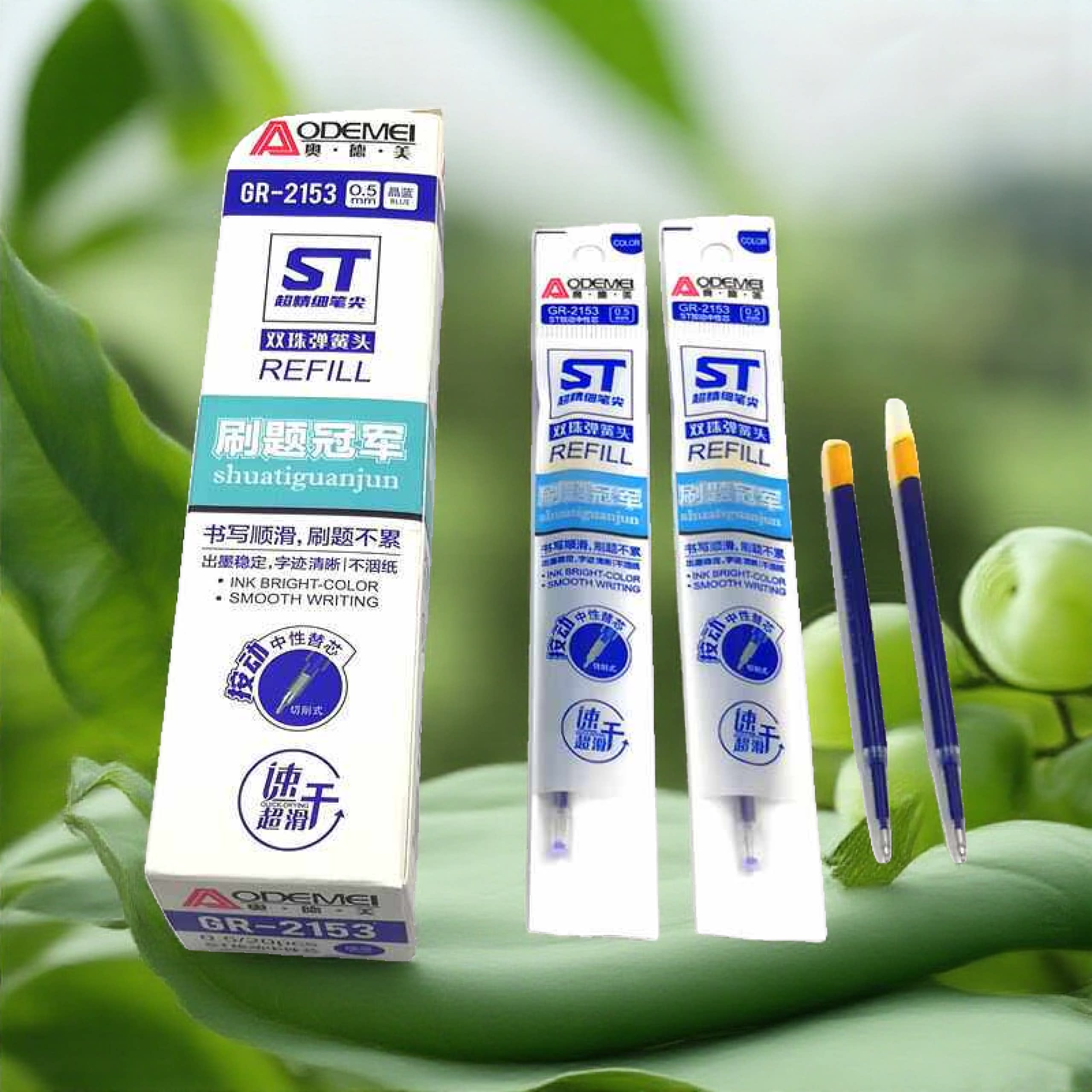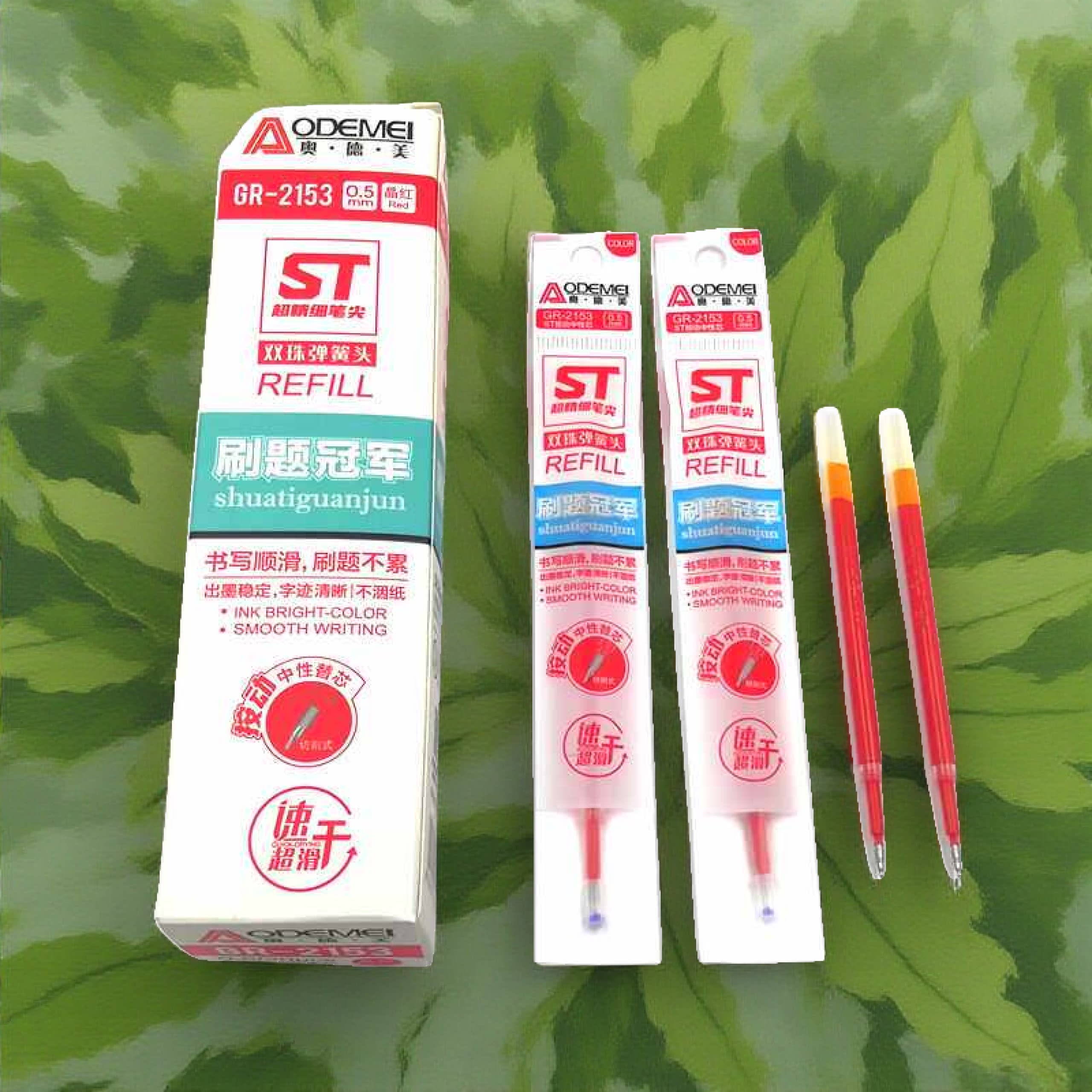 📚 奥德美不可擦按动笔芯0.5碳黑ST头中性替芯晶蓝红色刷题笔芯速干