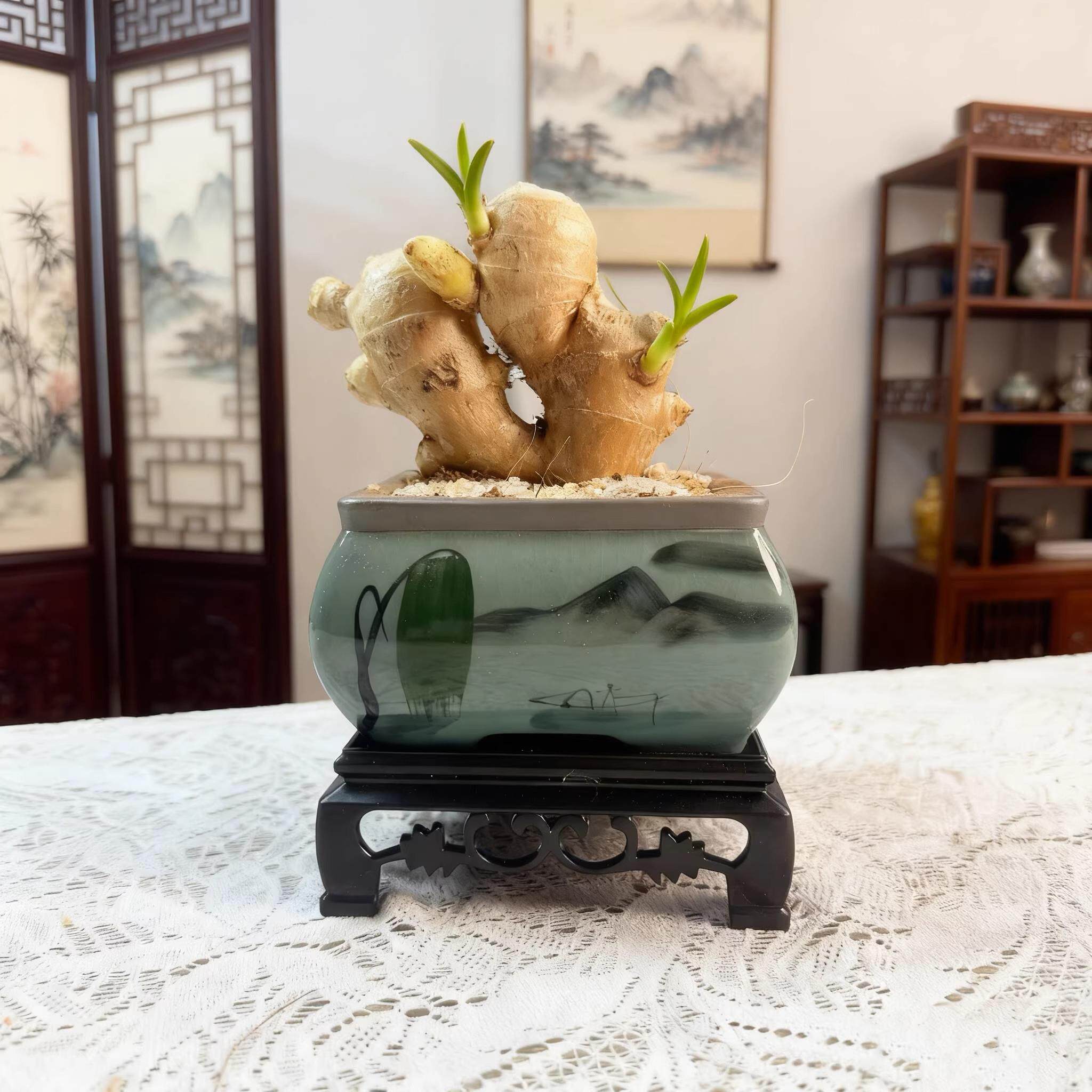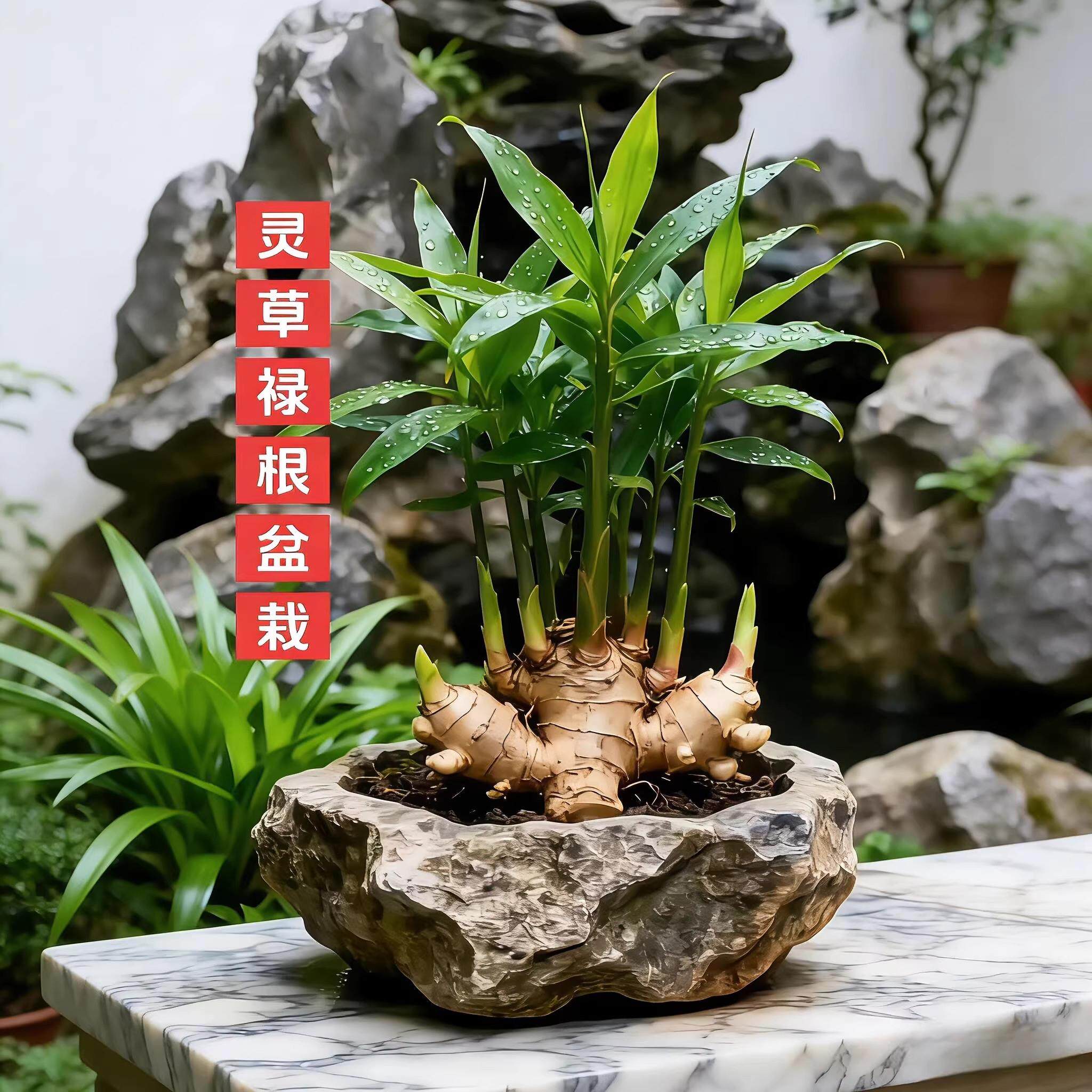 📚 请叫我禄根盆栽带芽灵草好养生姜盆栽植物办公室内桌面小绿植盆景