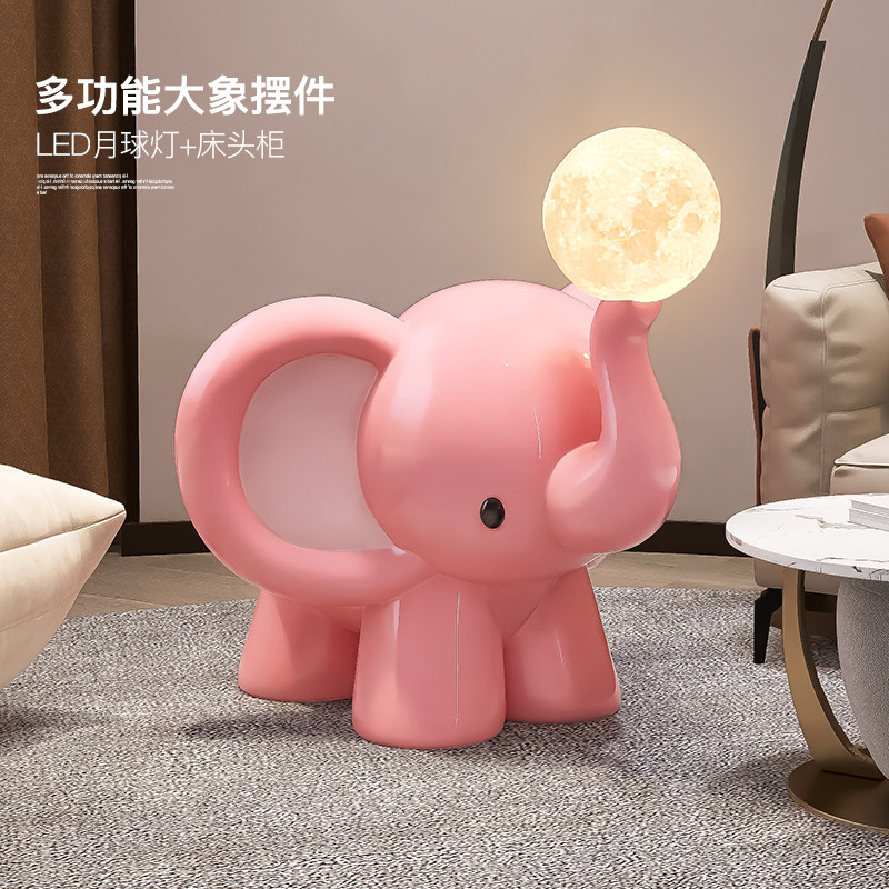 📚 卡通大象客厅大型落地摆件沙发边几电视柜旁茶几床头灯乔迁礼物