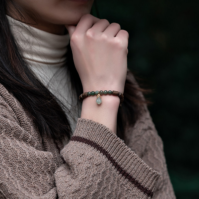 📚 天然越南芽庄奇楠沉香手串桶珠蜜蜡和田玉佛珠沉水级沉香木手链女