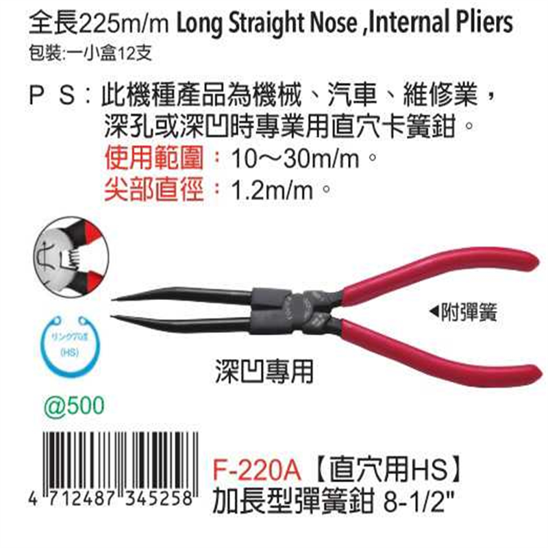 📚 台湾进口原装F-220A富具亚FUJIYA加长型弹簧钳卡簧钳挡圈钳170MM