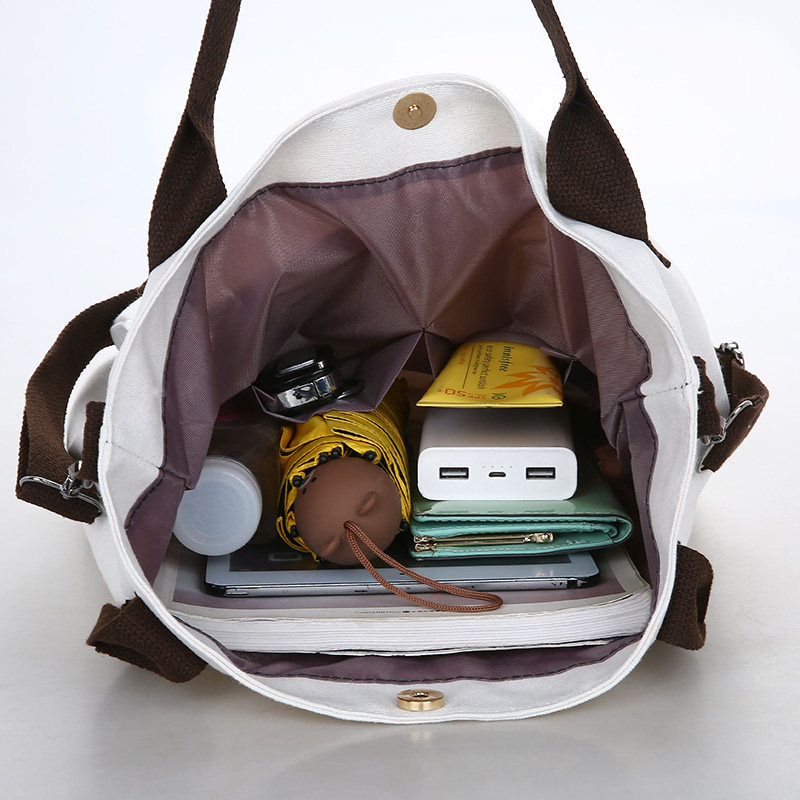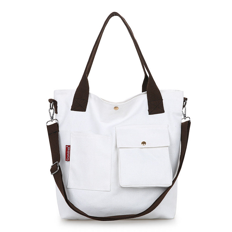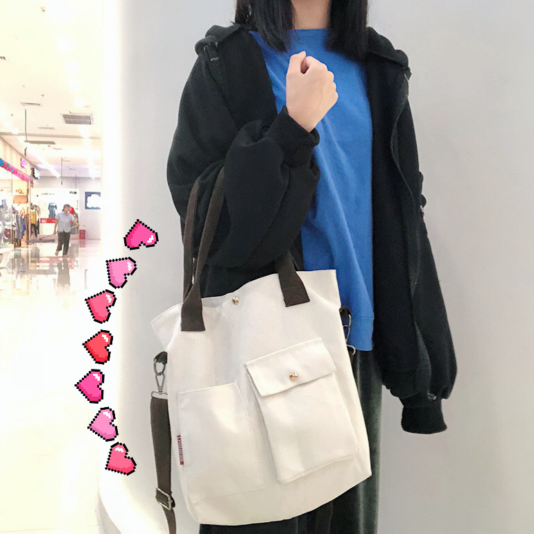📚 黑色帆布包女斜挎日系ins大学生上课单肩包大容量简约百搭手提袋