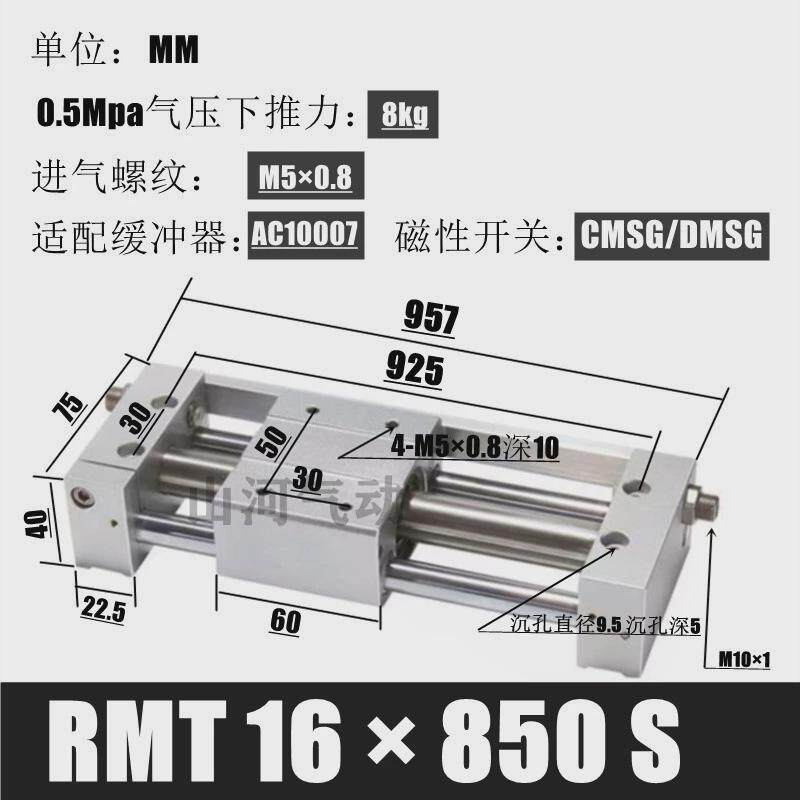 📚 热销磁耦合无杆气缸RMT16/20/25/32/40*100x200X300X400X500X600X