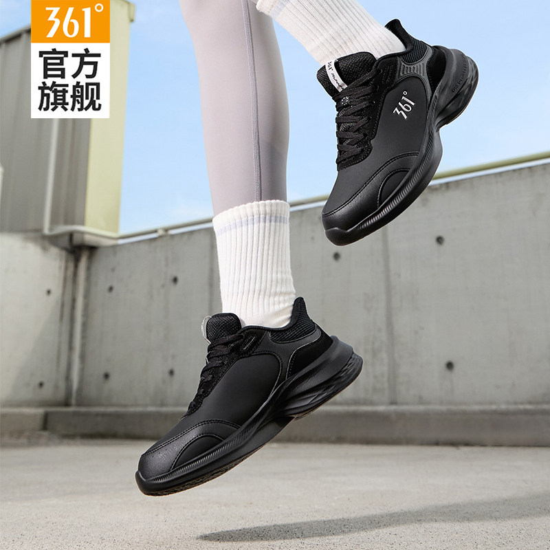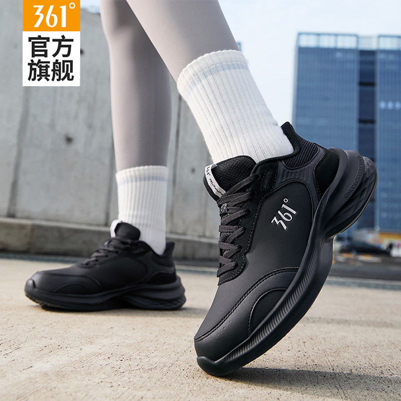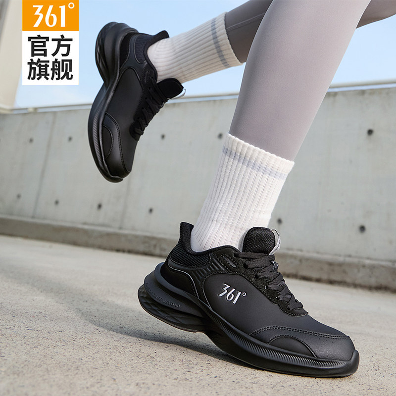 📚 361女鞋运动鞋2026春夏新款皮面防水跑步鞋女士轻便黑色休闲鞋子
