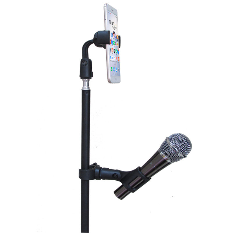 📚 话筒支架带手机位户外直播唱k歌麦克风落地三脚架可伸缩便携麦架