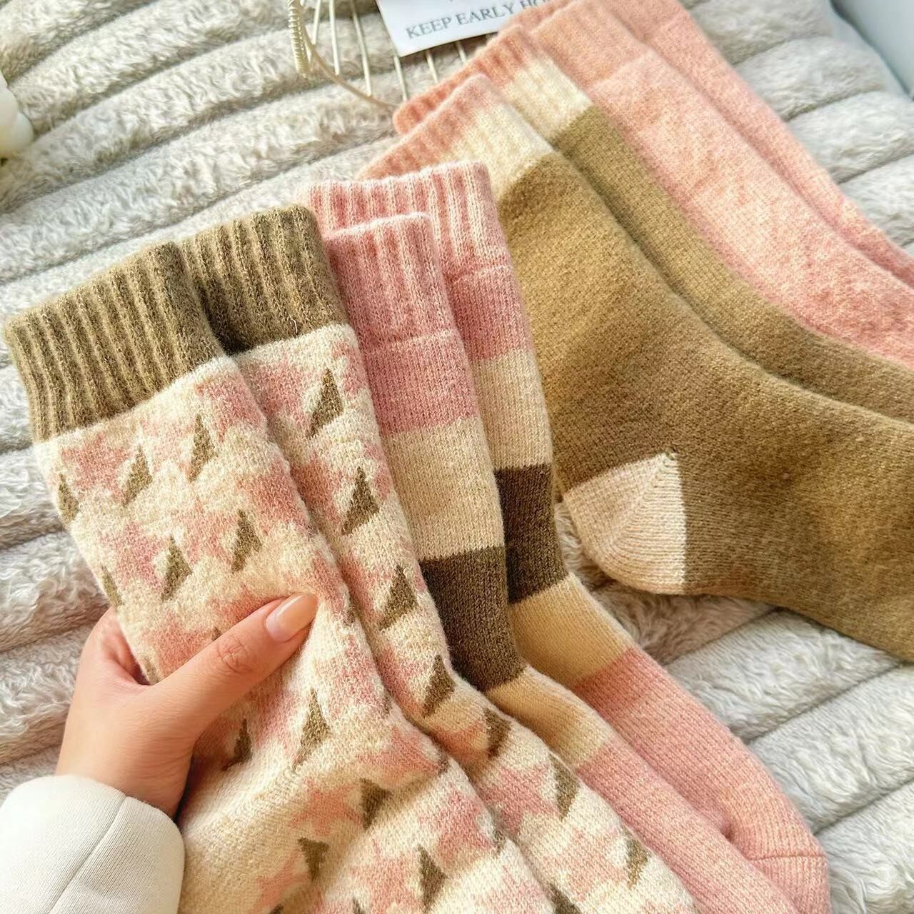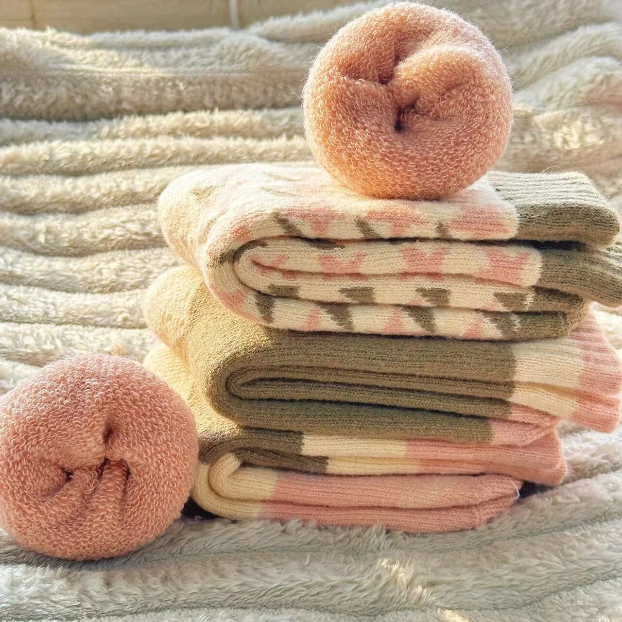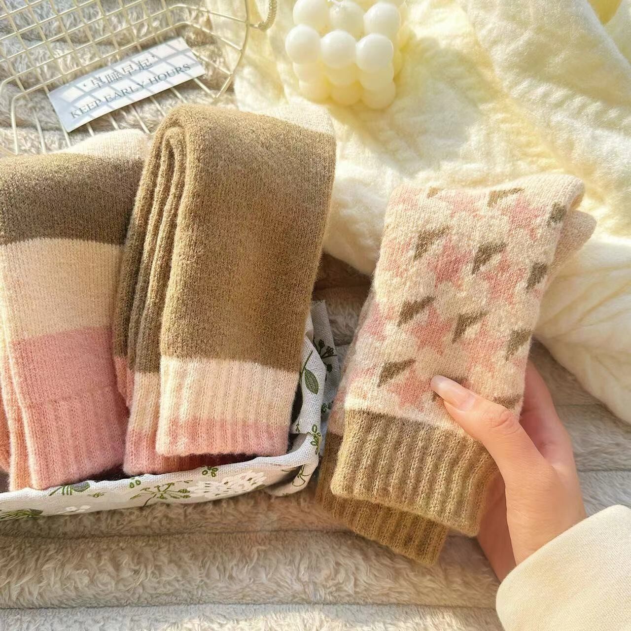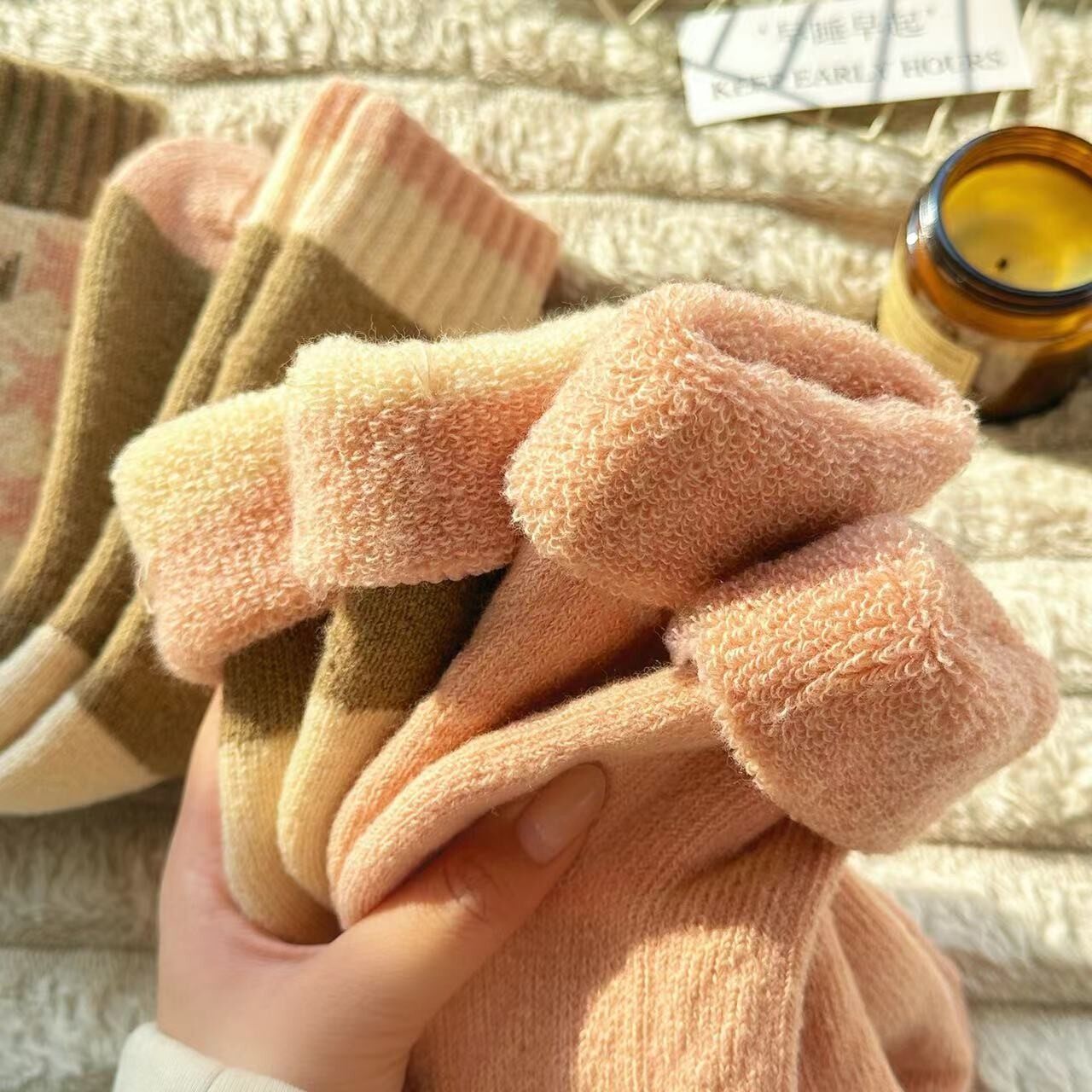 📚 女袜2025新款冬纯棉厚袜子女秋冬款中筒袜潮款拼色毛圈花纹长袜冬