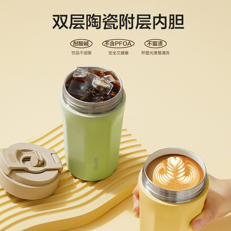 📚 苏泊尔保温杯双层陶瓷附层一盖双饮吸管便携保冷咖啡杯KC45KM10