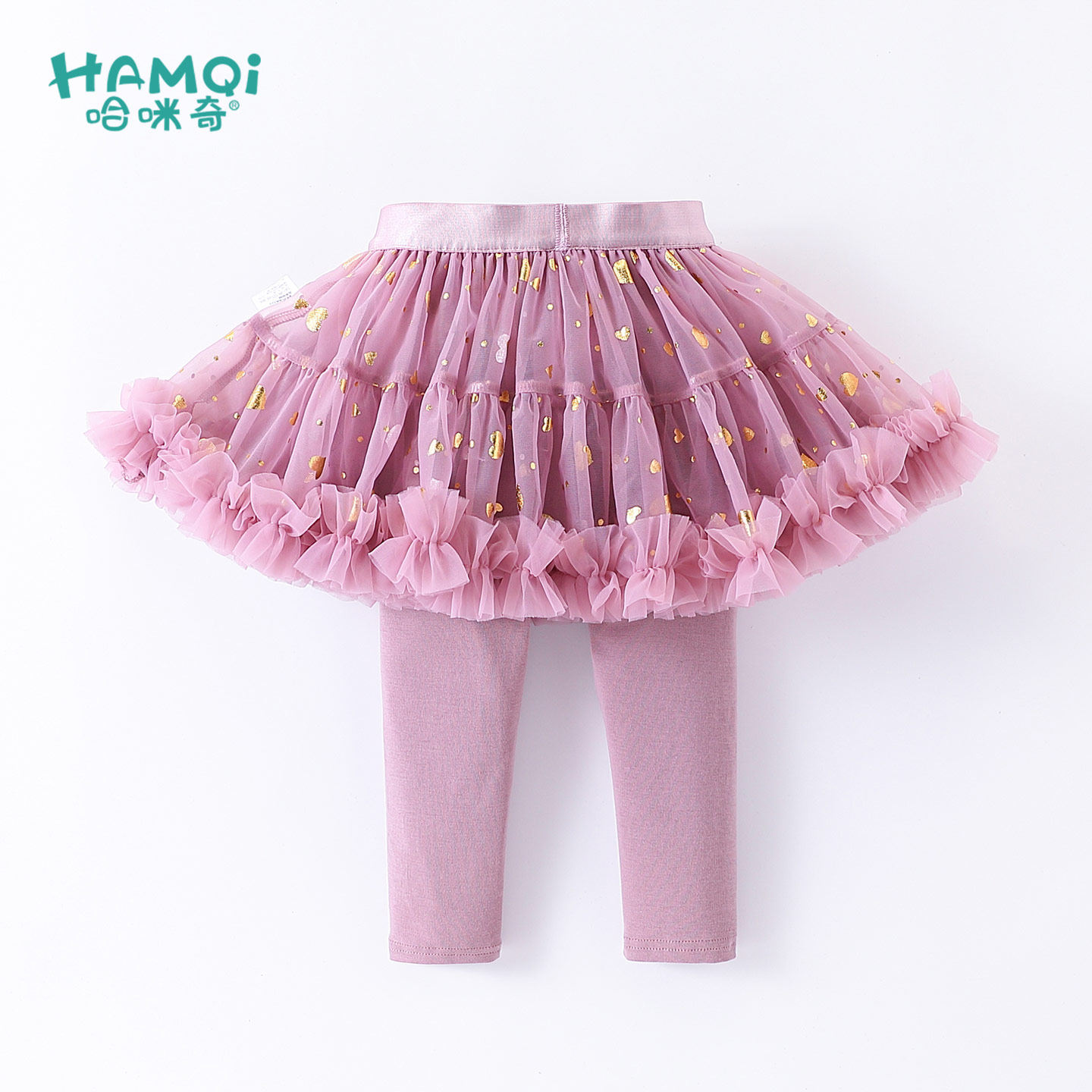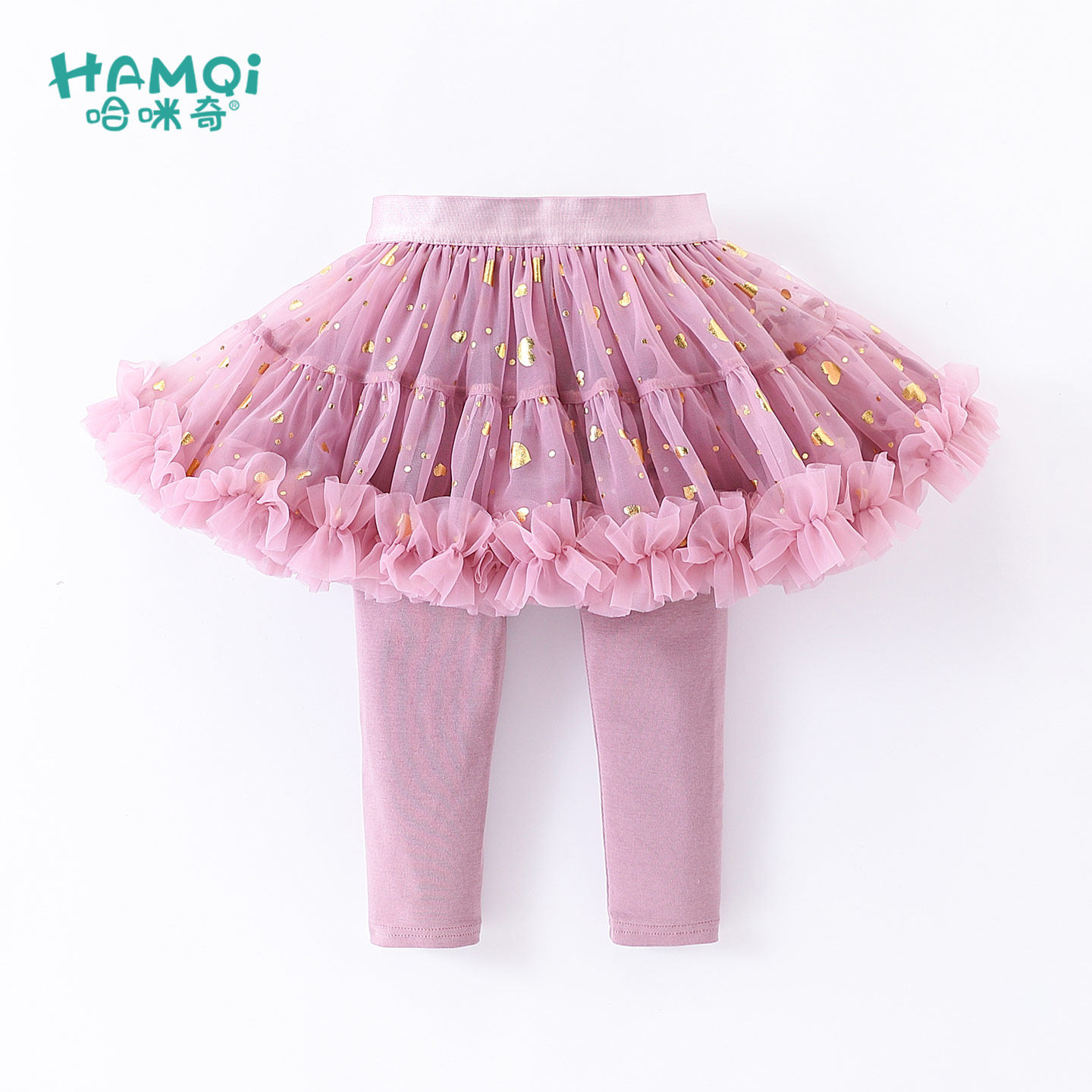 📚 女童裙裤春秋季洋气公主风打底裤小儿童宝宝网纱拼接假两件裤子潮