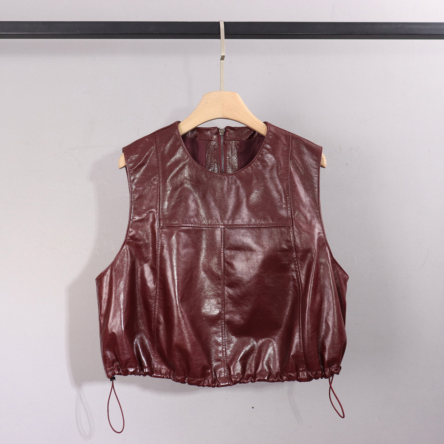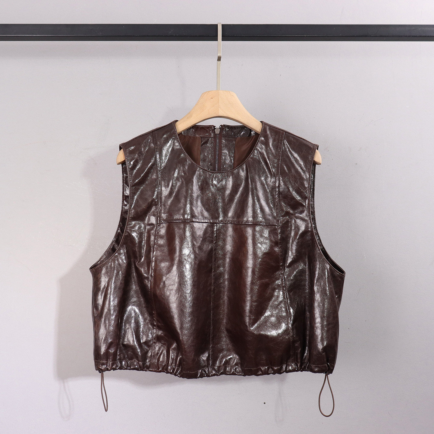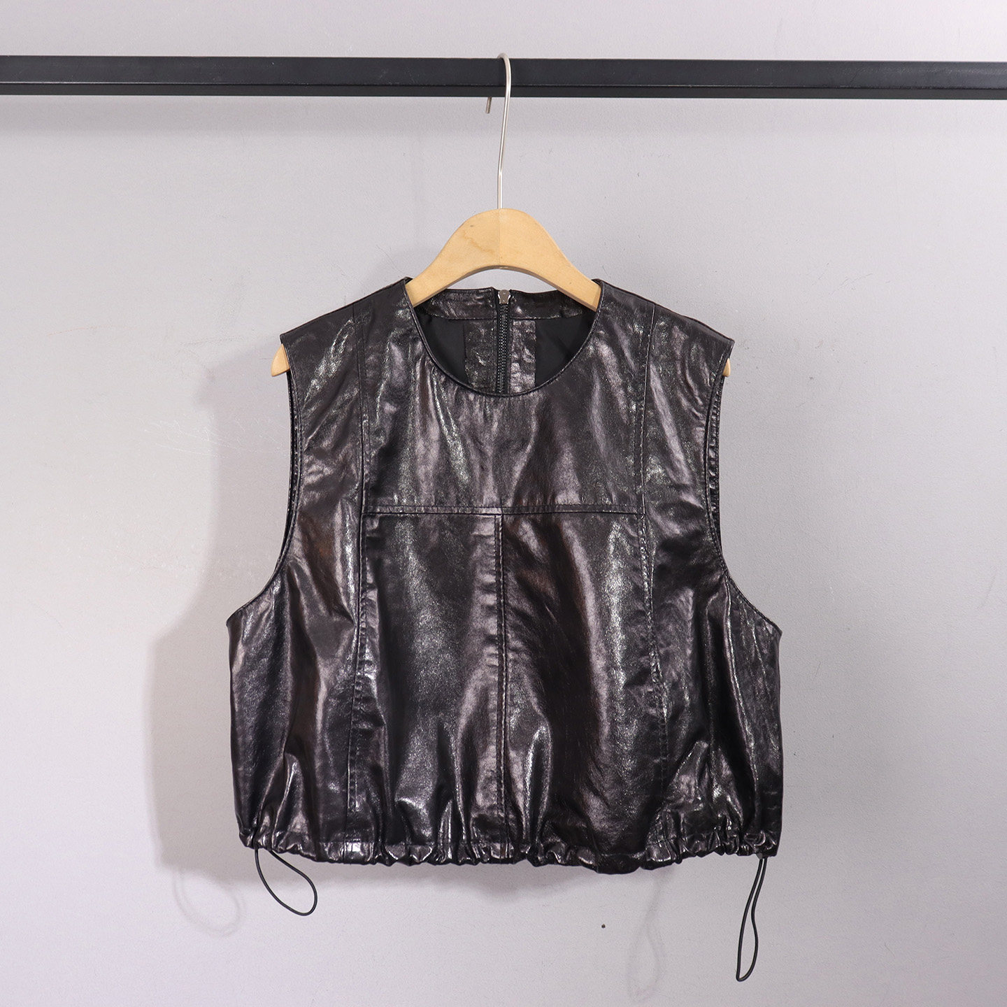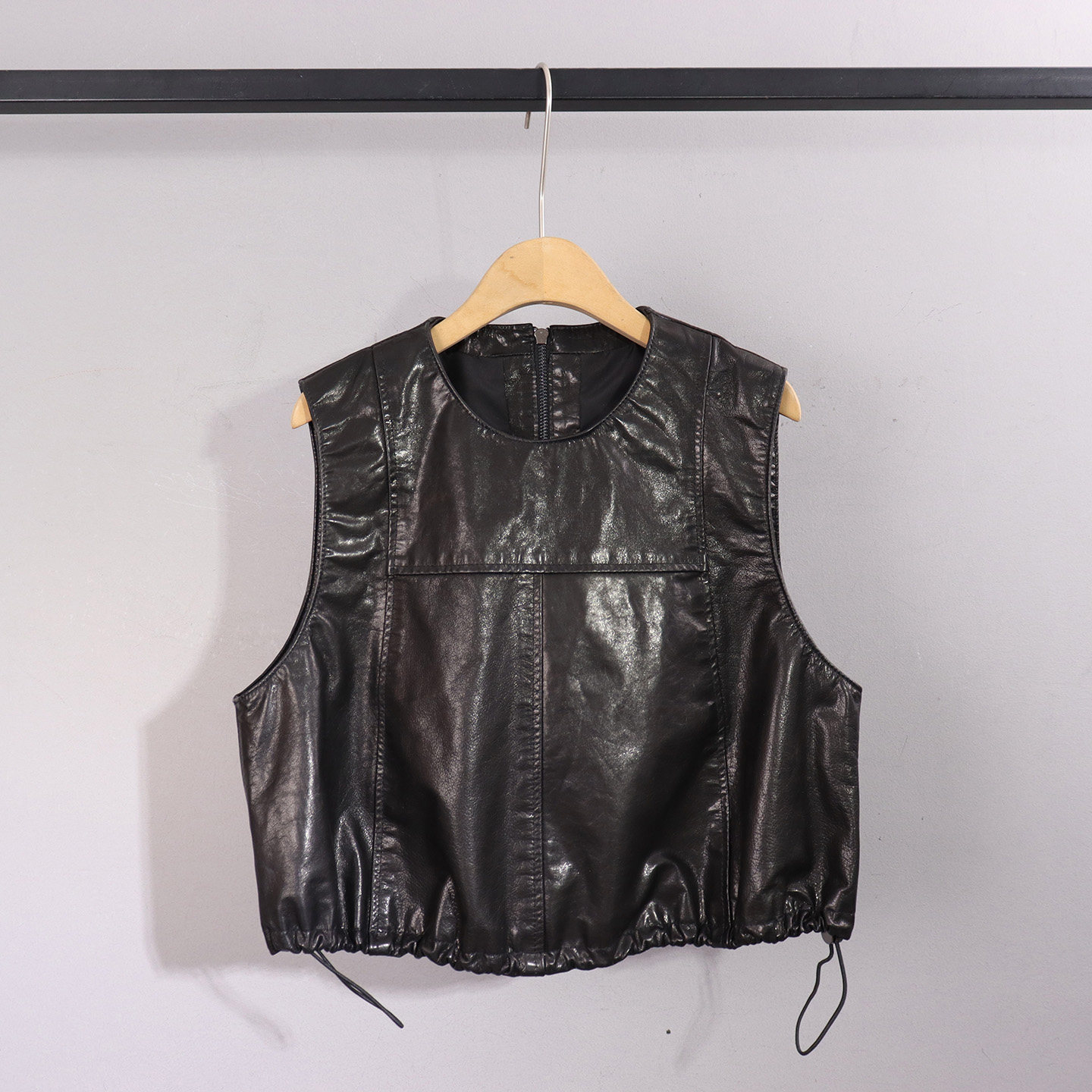 📚 2026春季新款真皮马甲女短款油蜡皮无袖背心显瘦抽绳收腰坎肩外套