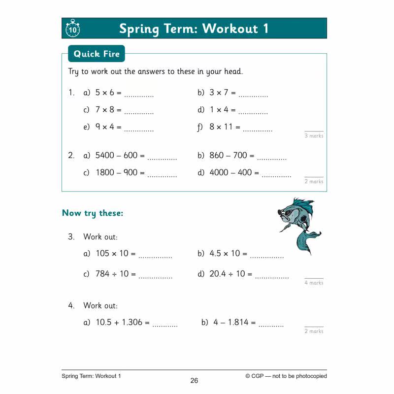 📚 英国原版CGP教辅 新的 KS2 数学 10分钟每周锻炼算术5年级New KS2 Maths 10-Minute Weekly Workouts Arithmetic 大音