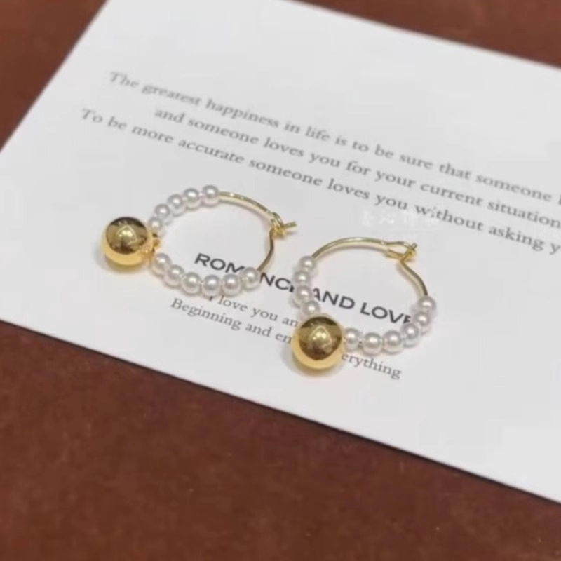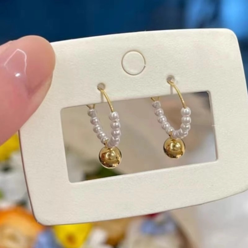📚 串珠金属球吊坠耳扣女轻奢高级感小众独特法式耳钉新款爆款耳环女