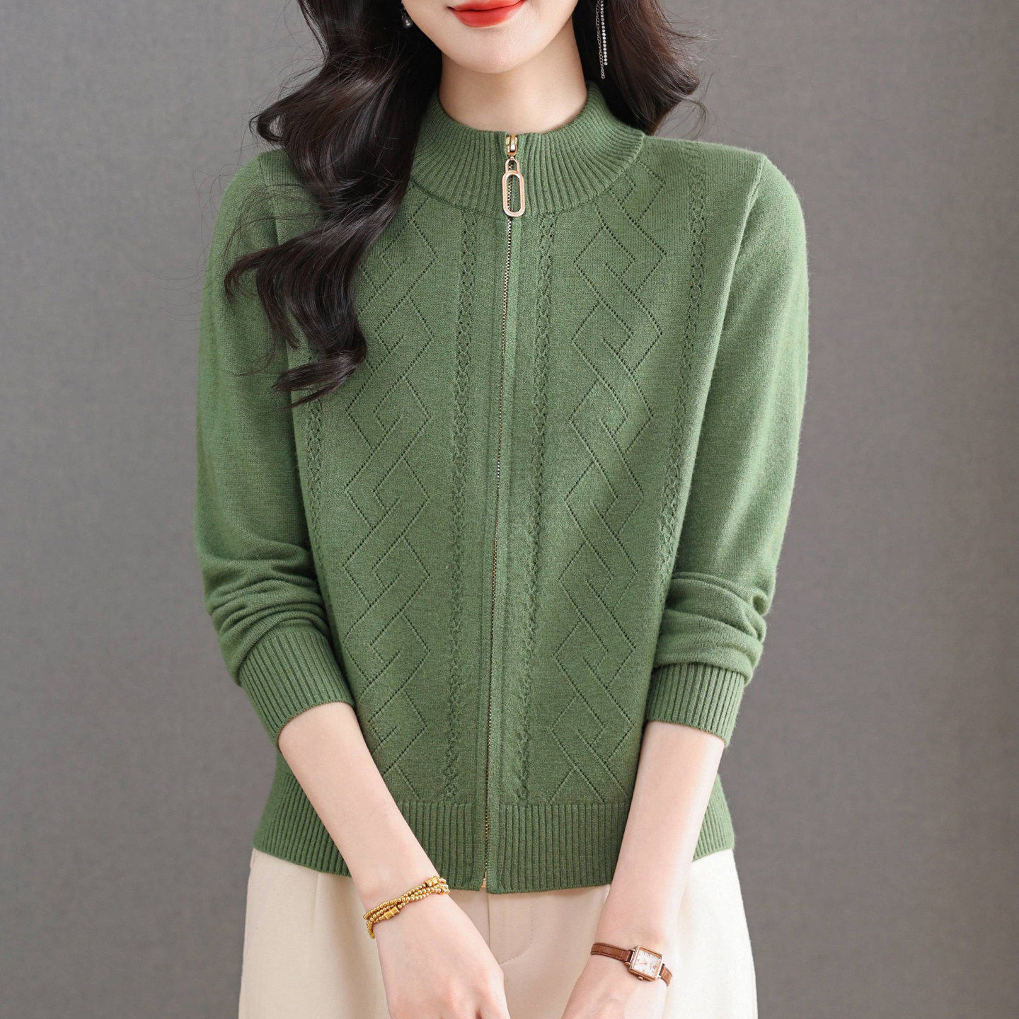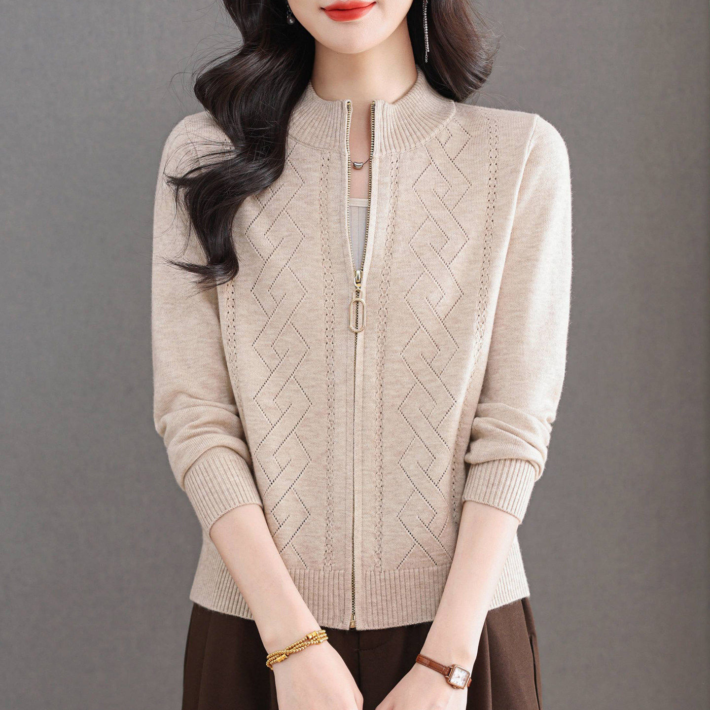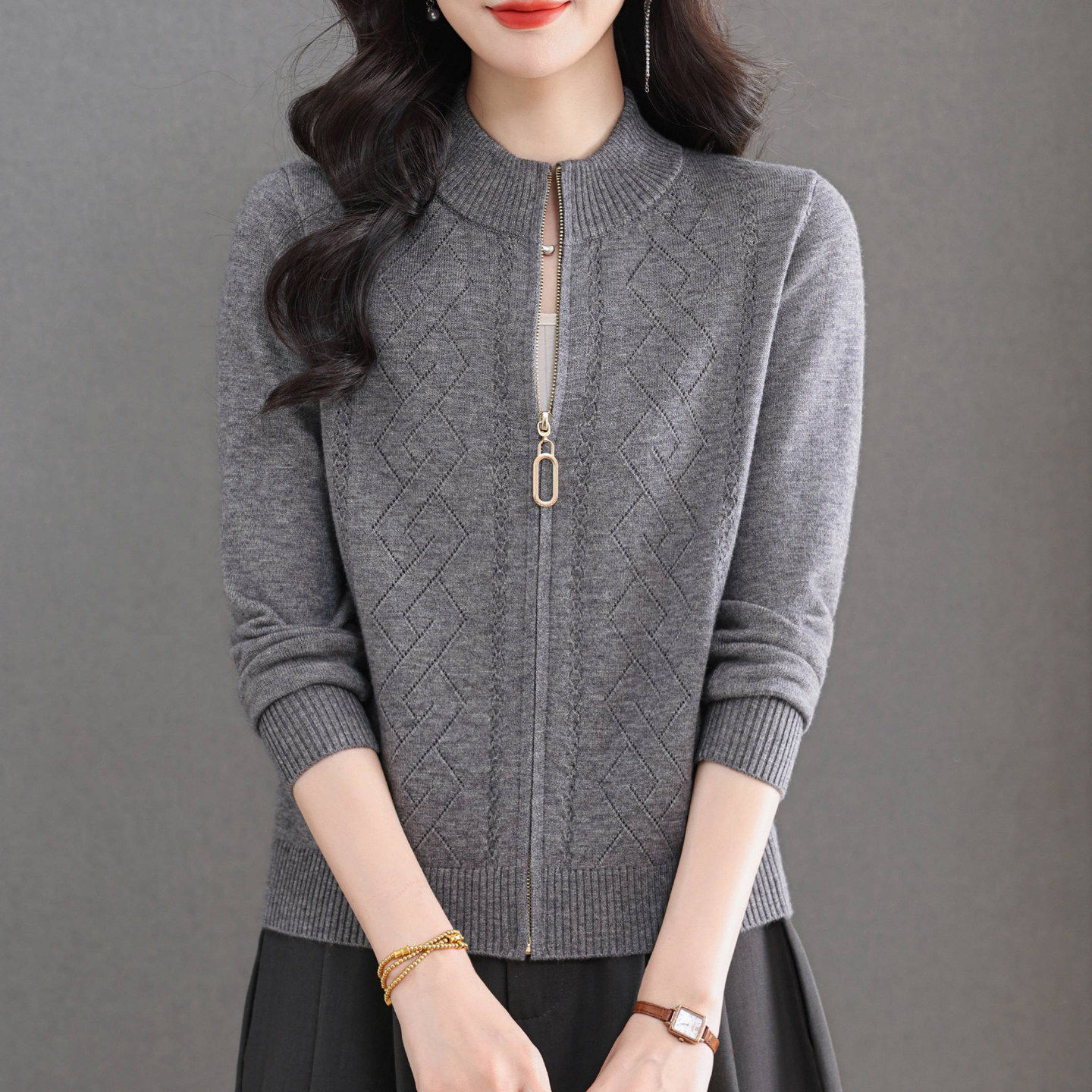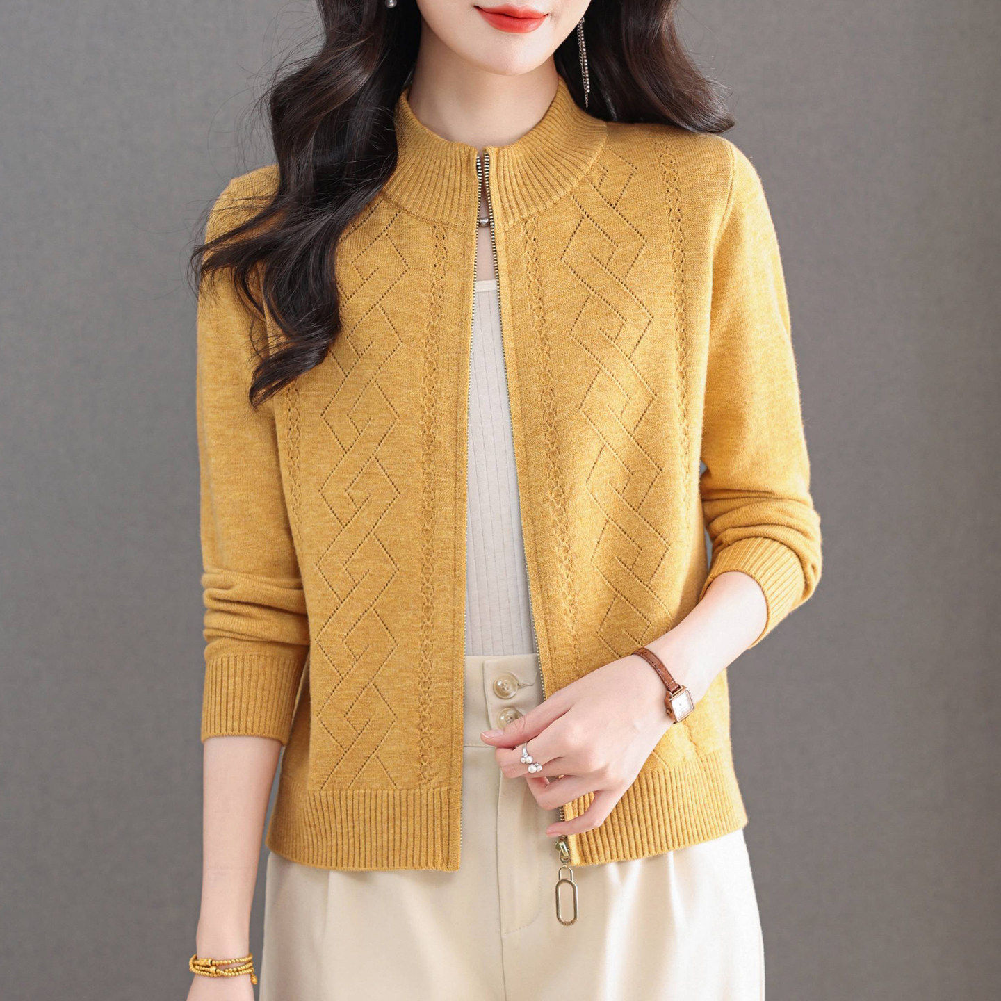 📚 立领拉链针织开衫女短款春秋外搭宽松显瘦上衣小个子妈妈毛衣外套