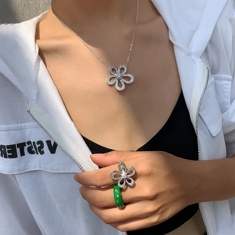 📚 满钻太阳花朵项链女2026新款高级感轻奢小众不掉色吊坠气质毛衣链