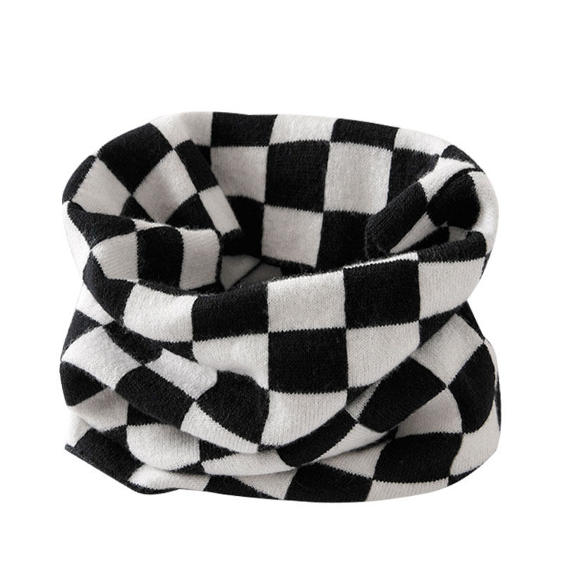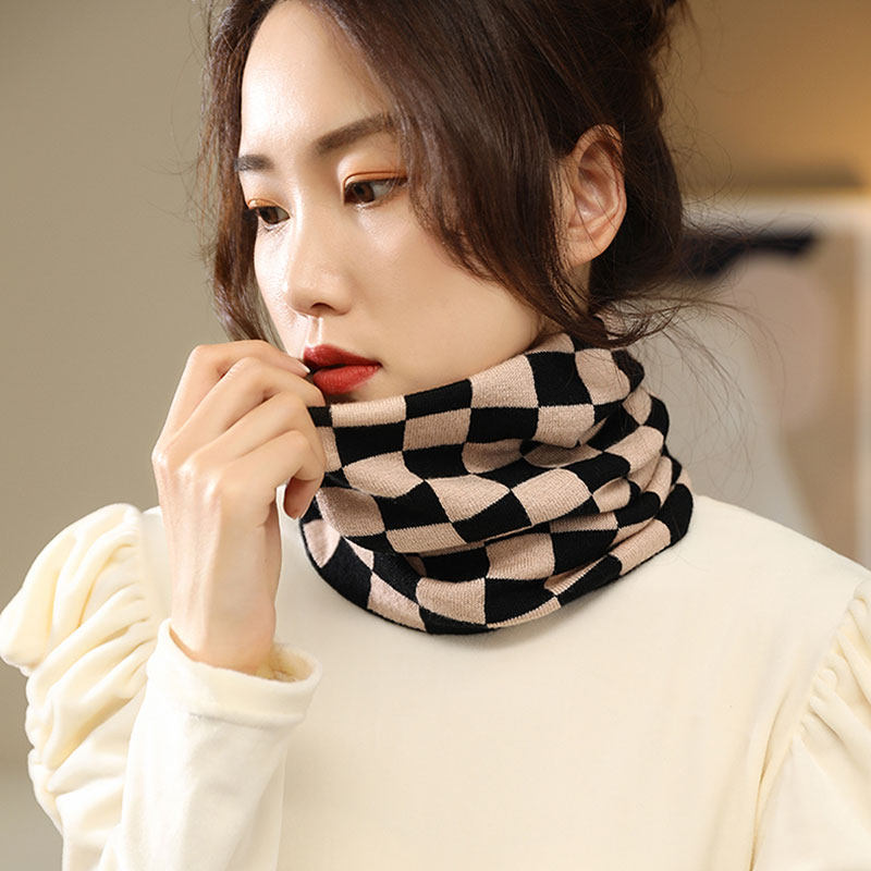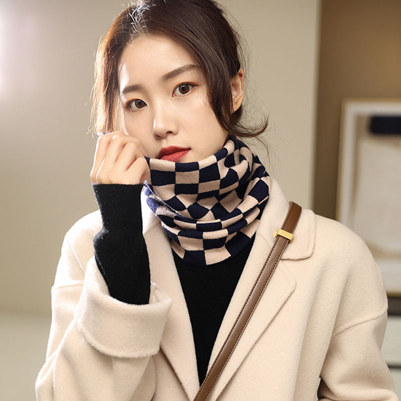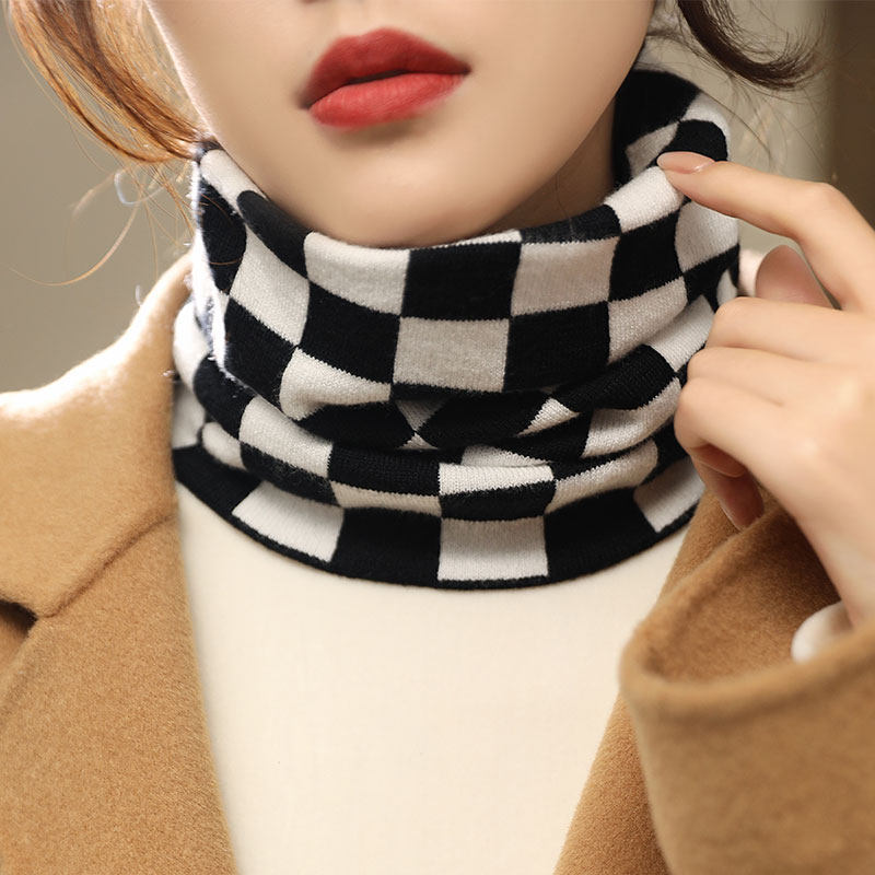 📚 羊绒围脖女秋冬季薄保暖黑白棋盘格子围巾百搭护颈椎假领套头脖套