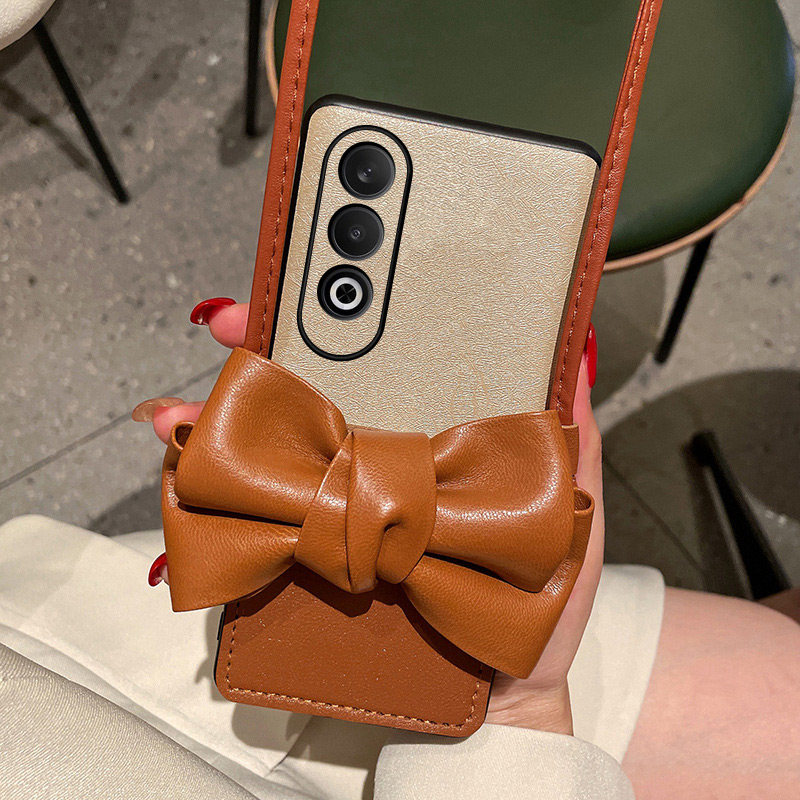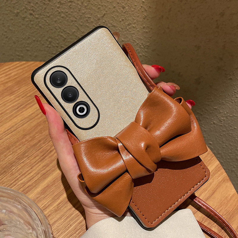 📚 适用于OPPOK12手机壳潮流时尚棕色蝴蝶结创意卡包oppok12蚕丝纹全包防摔保护套oppo新款创意斜挎挂绳女款