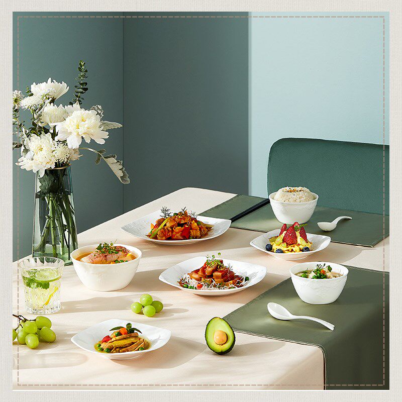 📚 玛戈隆特骨瓷餐具套装家用纯白浮雕碗盘送礼礼盒高级感碗餐盘盘子