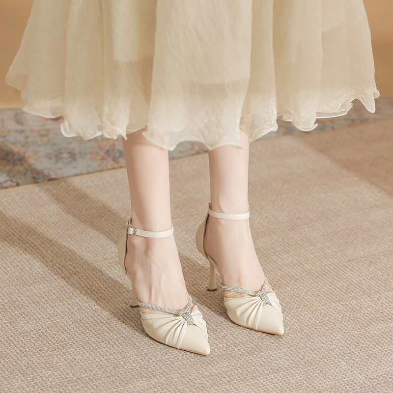 📚 包头一字带凉鞋高跟鞋女夏尖头细跟气质大码单鞋加肥加宽百搭水钻