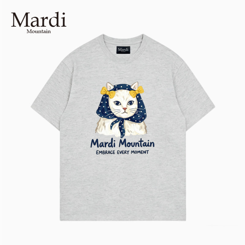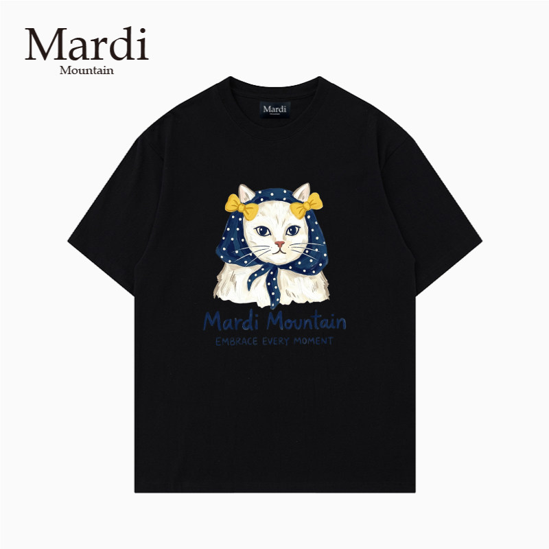 📚 Mardi Mountain韩国正品童趣猫咪印花短袖T恤男女圆领显瘦上衣