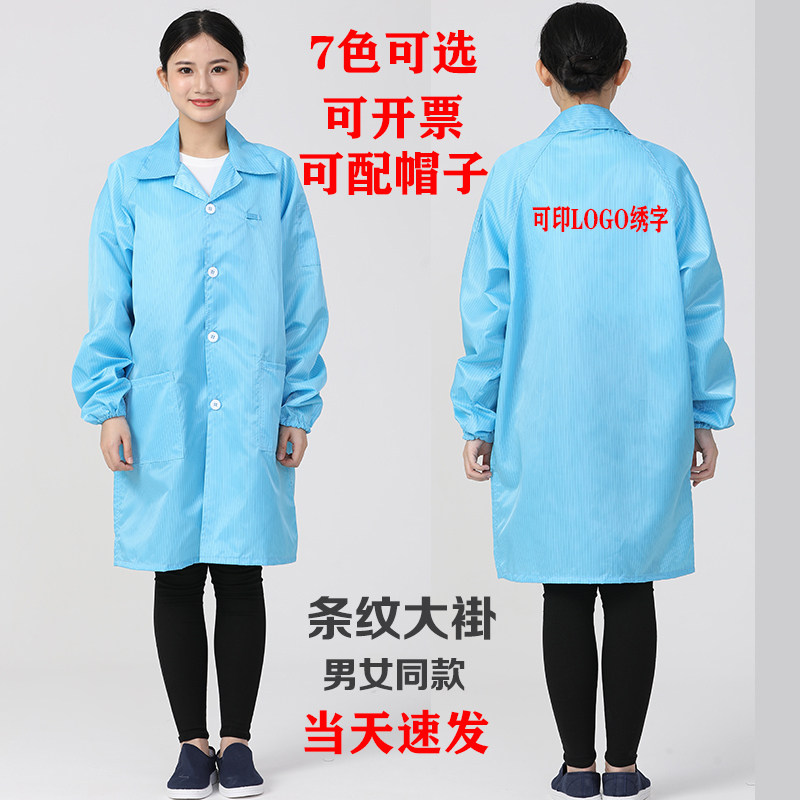 📚 静电服工作服大褂长款无尘衣蓝白粉色男女款食品电子厂车间富士康