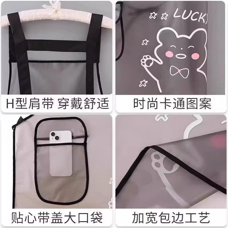 📚 厨房做饭围裙无袖拒水围腰餐饮水产宠物店半透明TPU免洗工作服