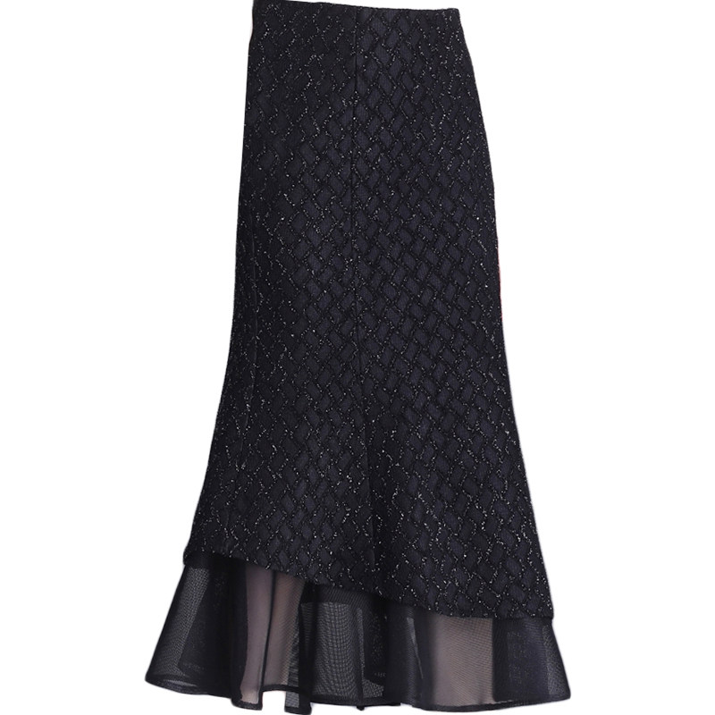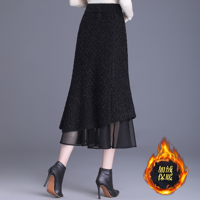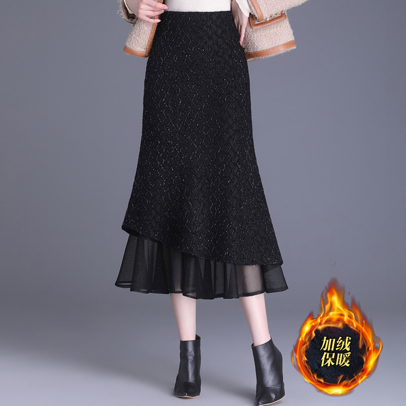 📚 加厚不规则鱼尾裙长裙优雅小香风亮丝格子半身裙加绒冬季包臀裙女