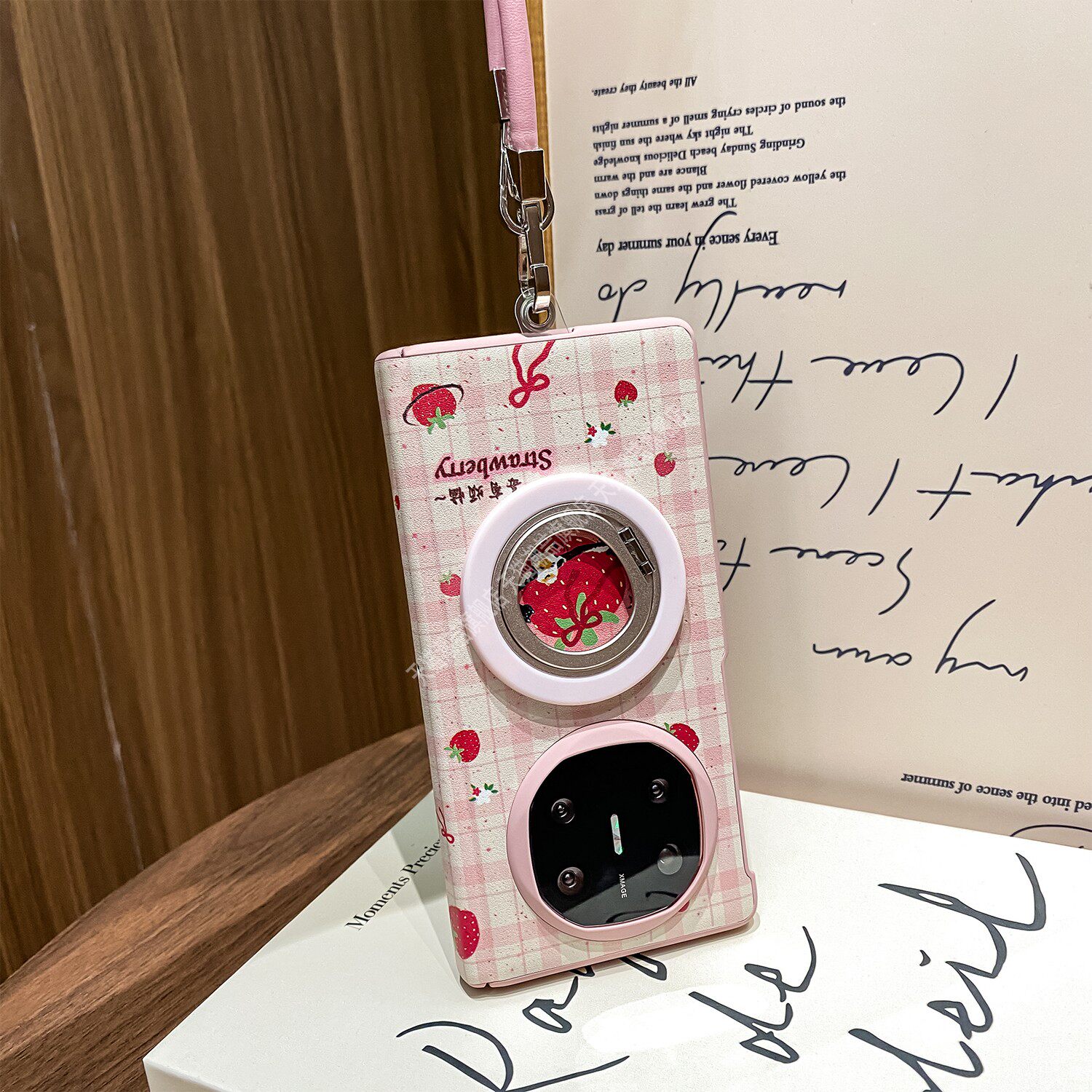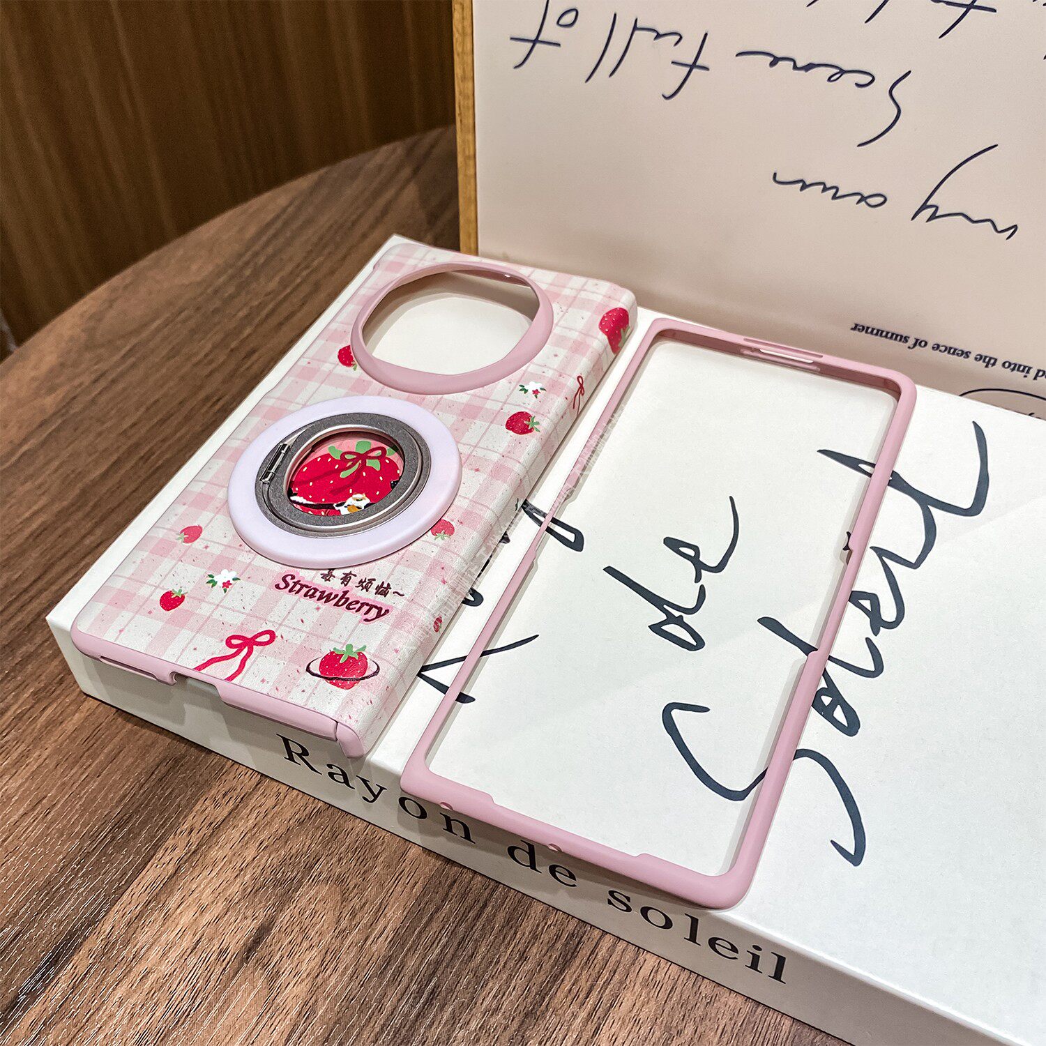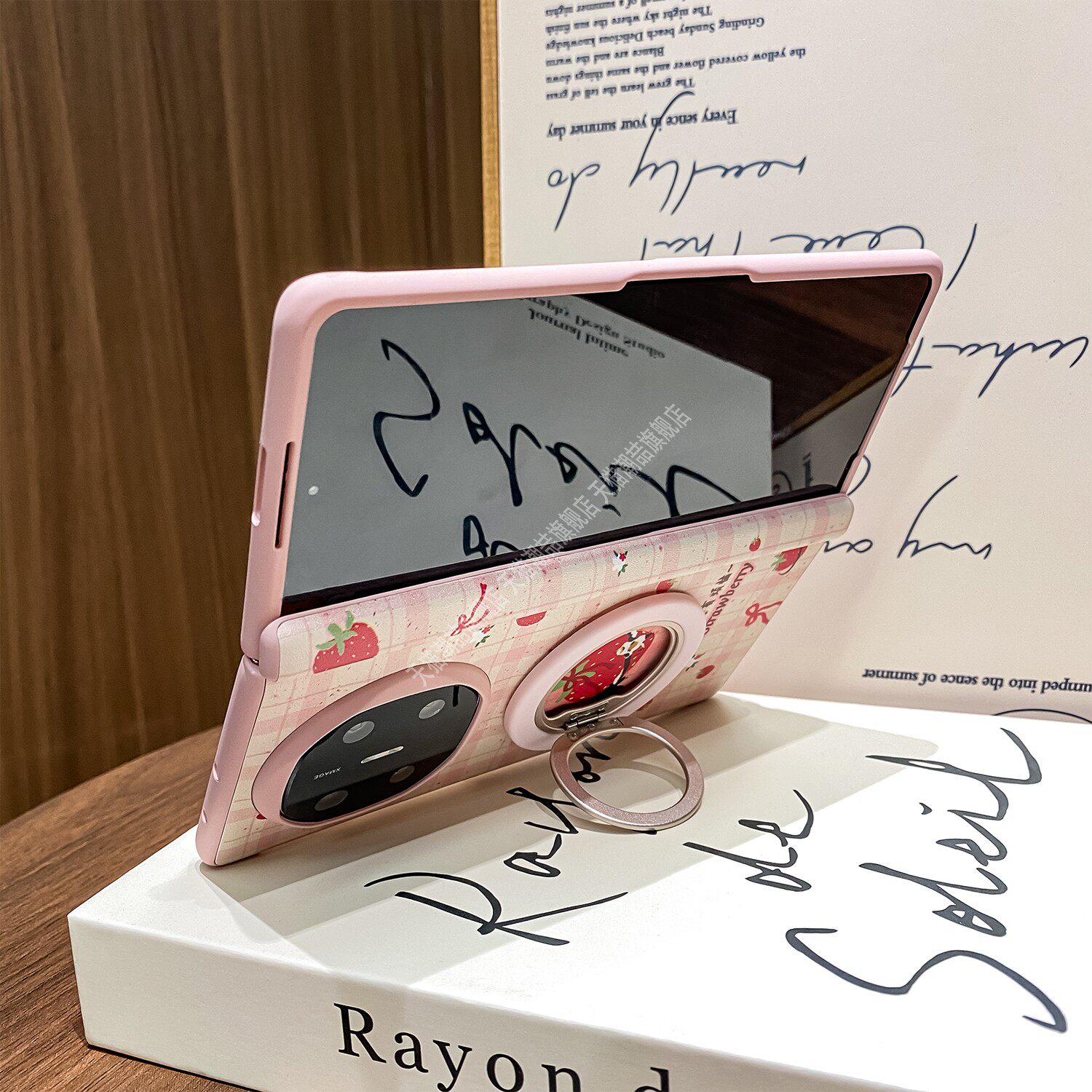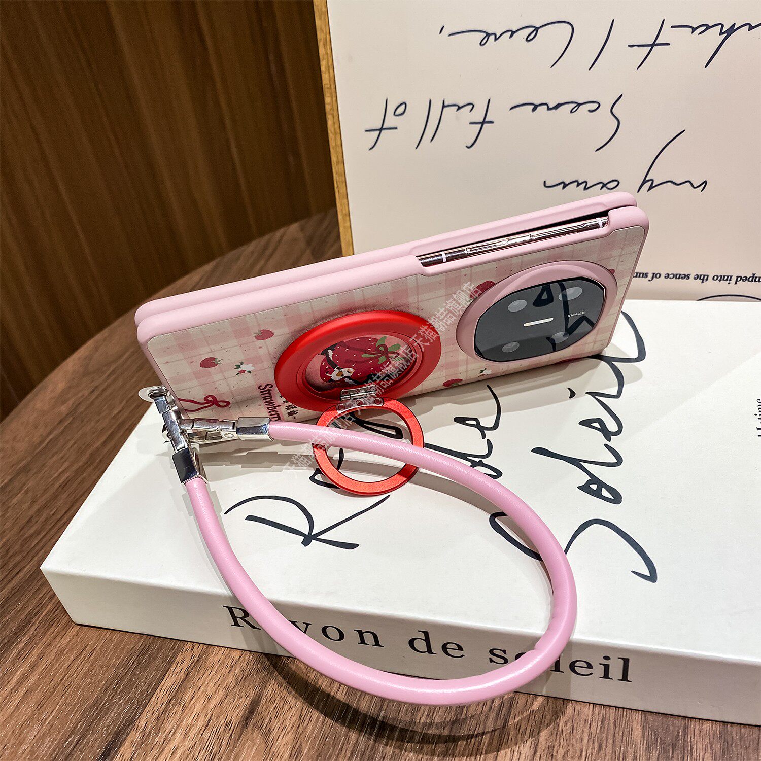 📚 适用华为matex6手机壳新款x5全包中轴oppon5创意卡通草莓猫咪vivoxfold5防摔保护磁吸支架挂绳无线充女款外壳