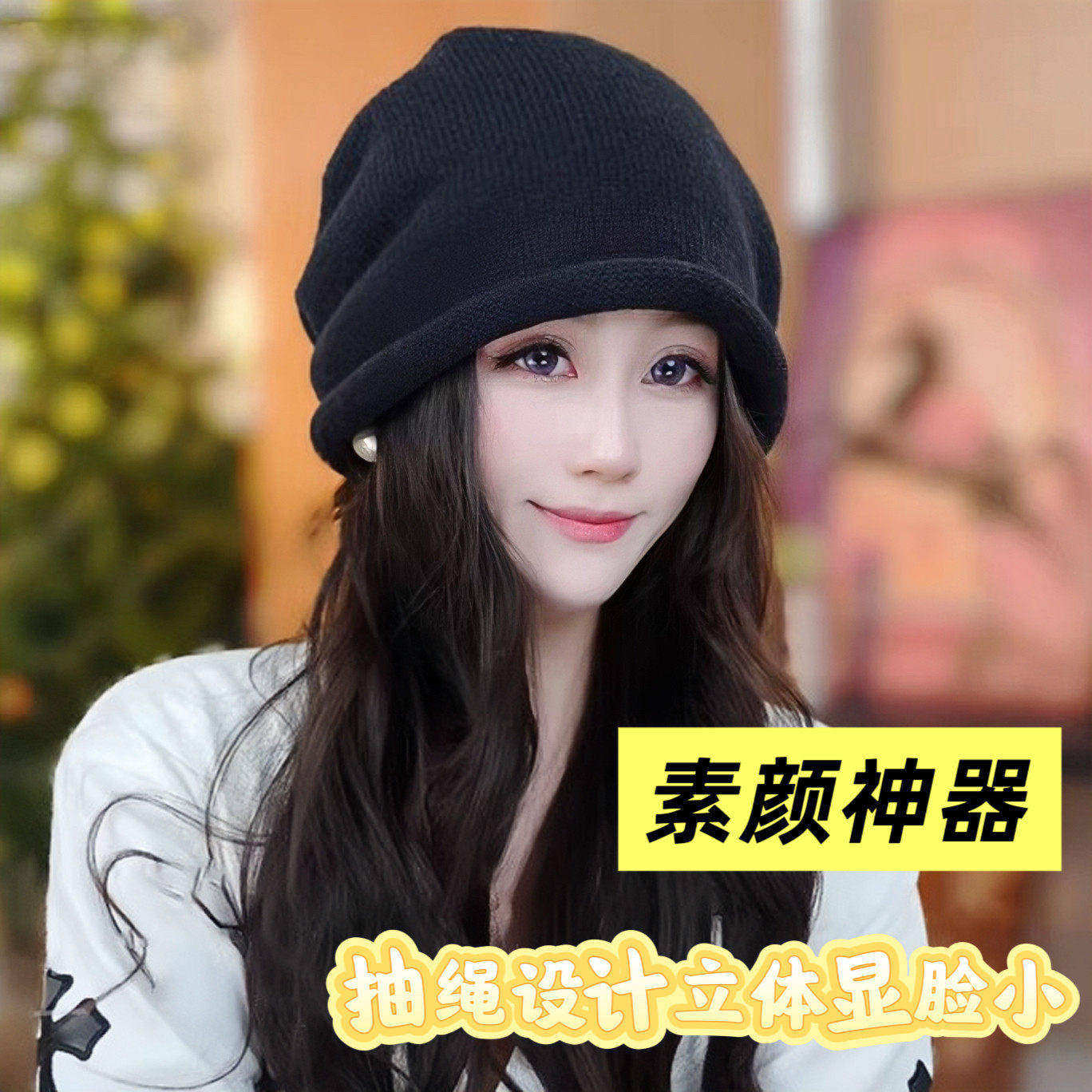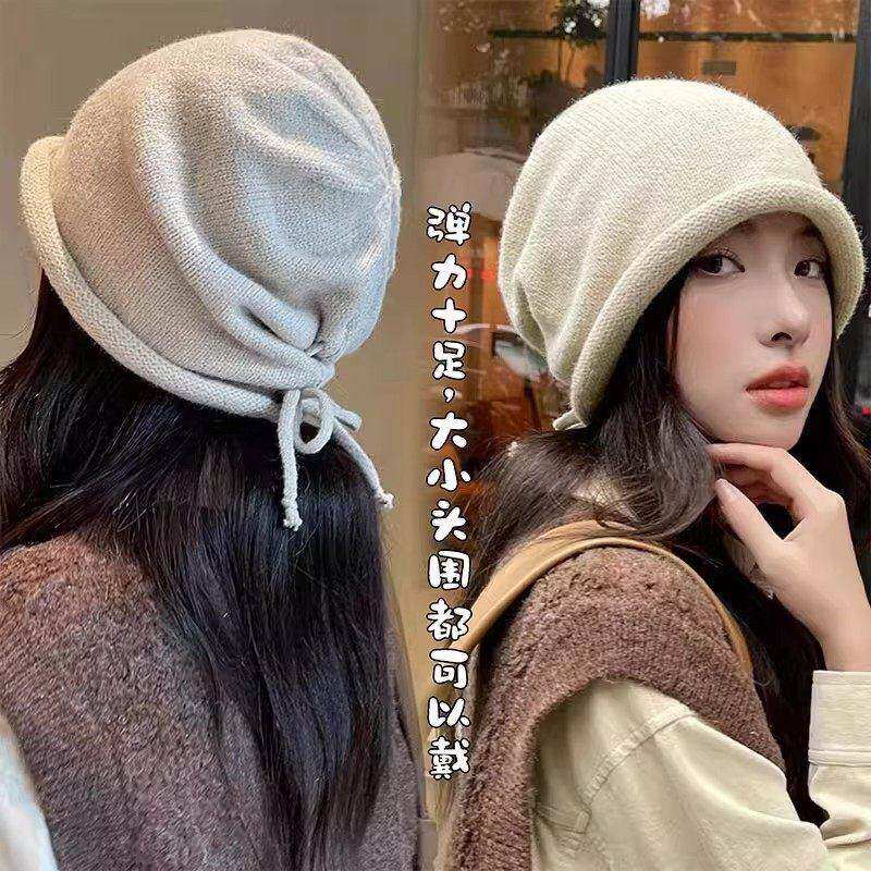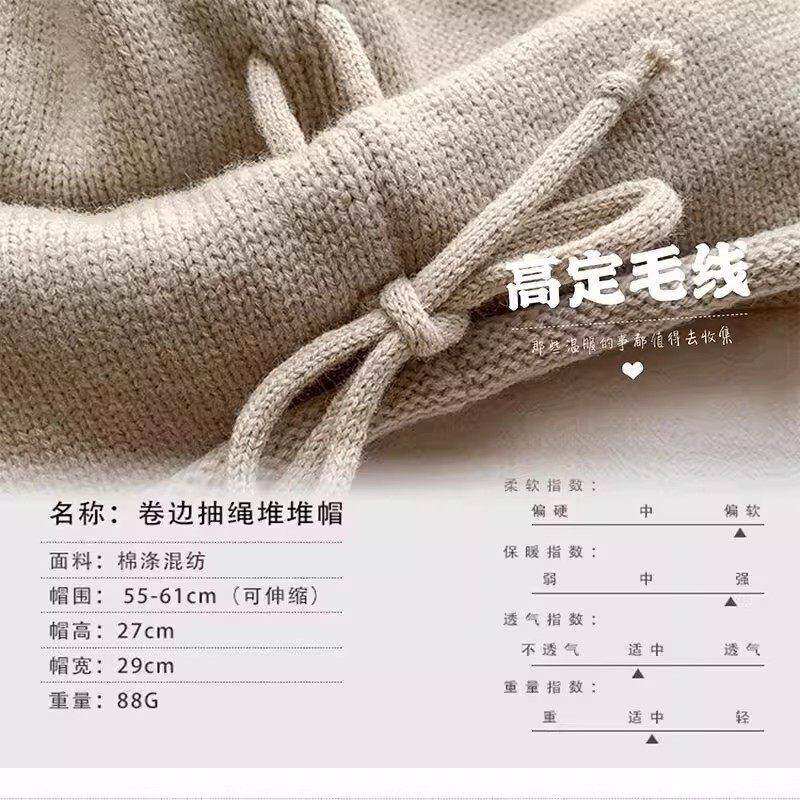 📚 灰色含羊毛卷边针织冷帽女秋冬季显脸小堆堆帽大头围百搭包头帽子