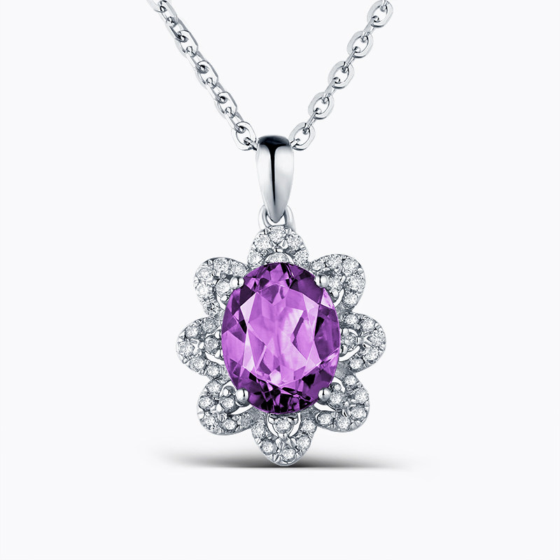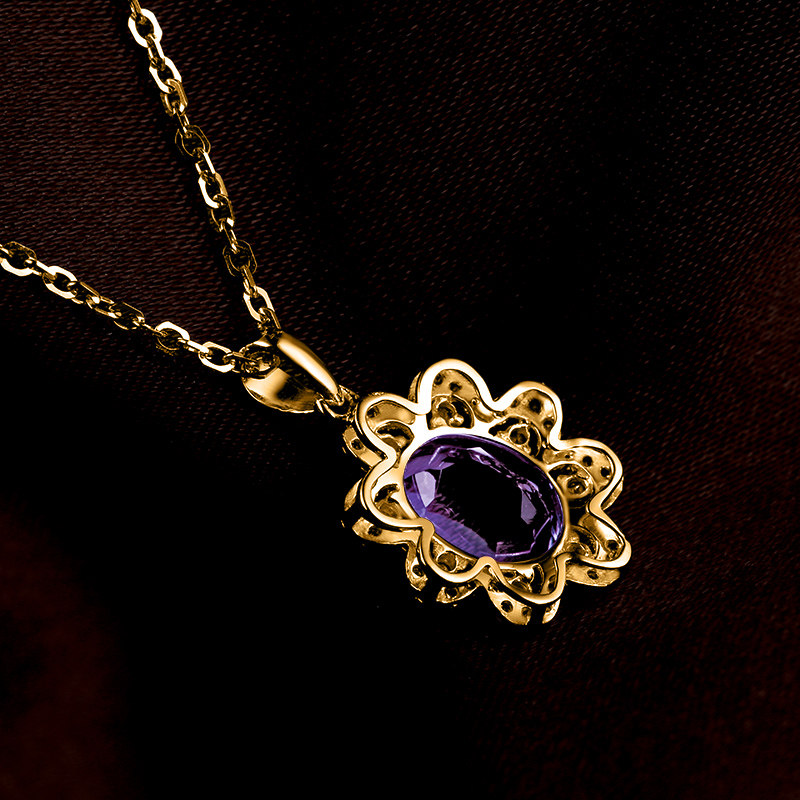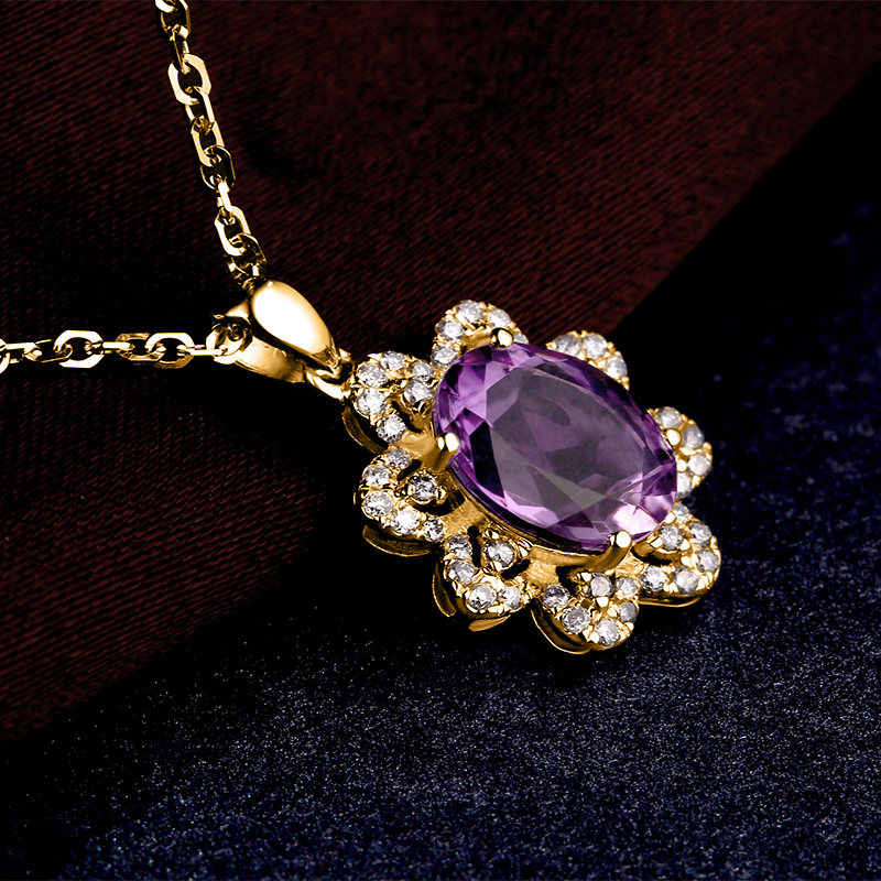 📚 蜜安琪 1.73克拉19.8分天然紫水晶吊坠 18K金女款项链 彩宝定制