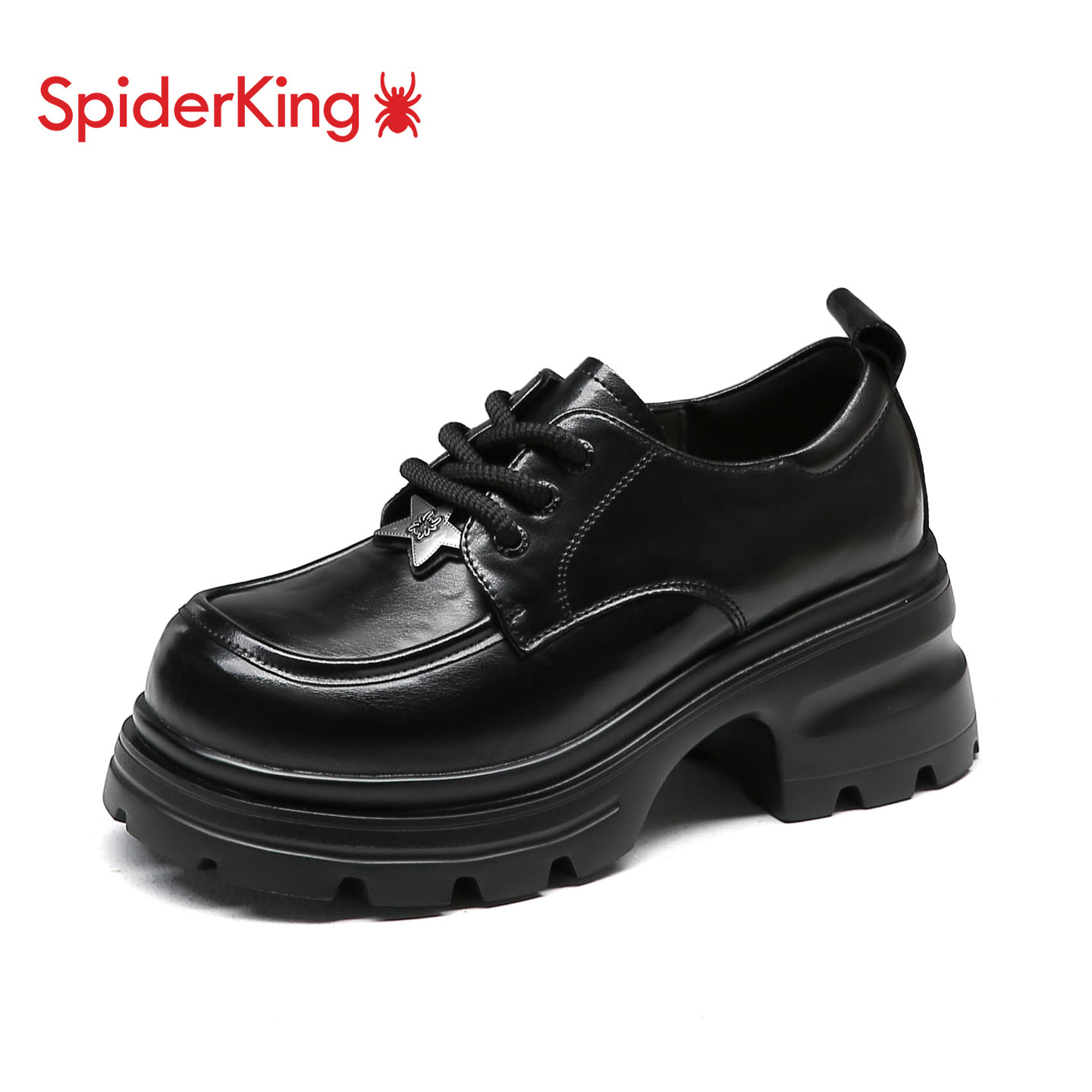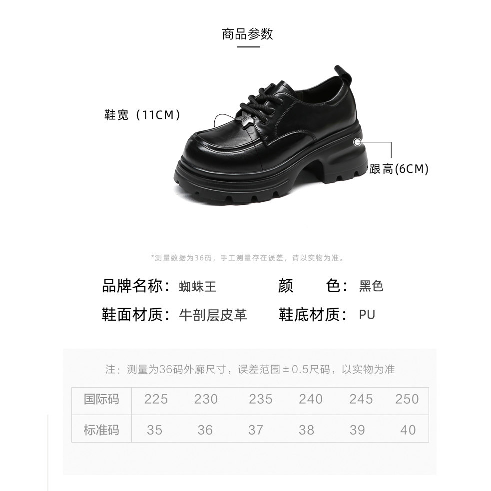 📚 蜘蛛王乐福鞋女鞋2026新款厚底增高英伦风真皮小皮鞋女款复古系带