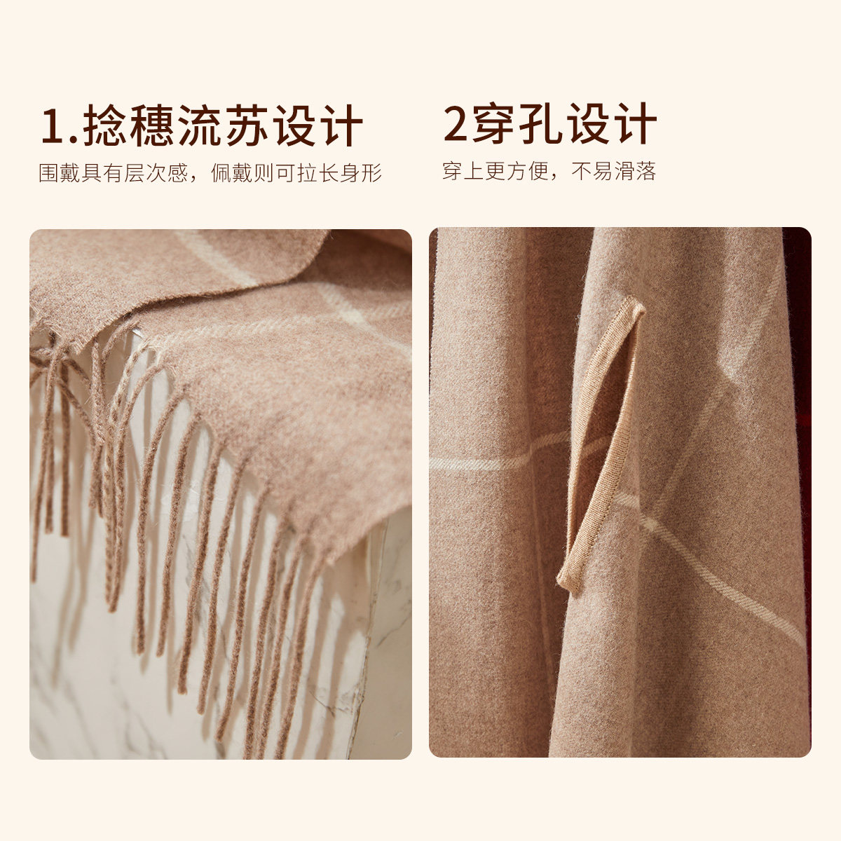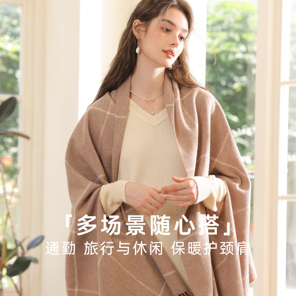 📚 真享100%羊毛披肩围巾女秋冬季2025新款高级感斗篷外搭护肩两用