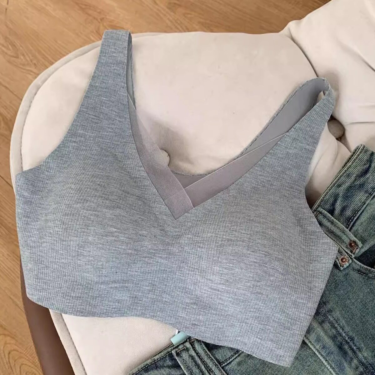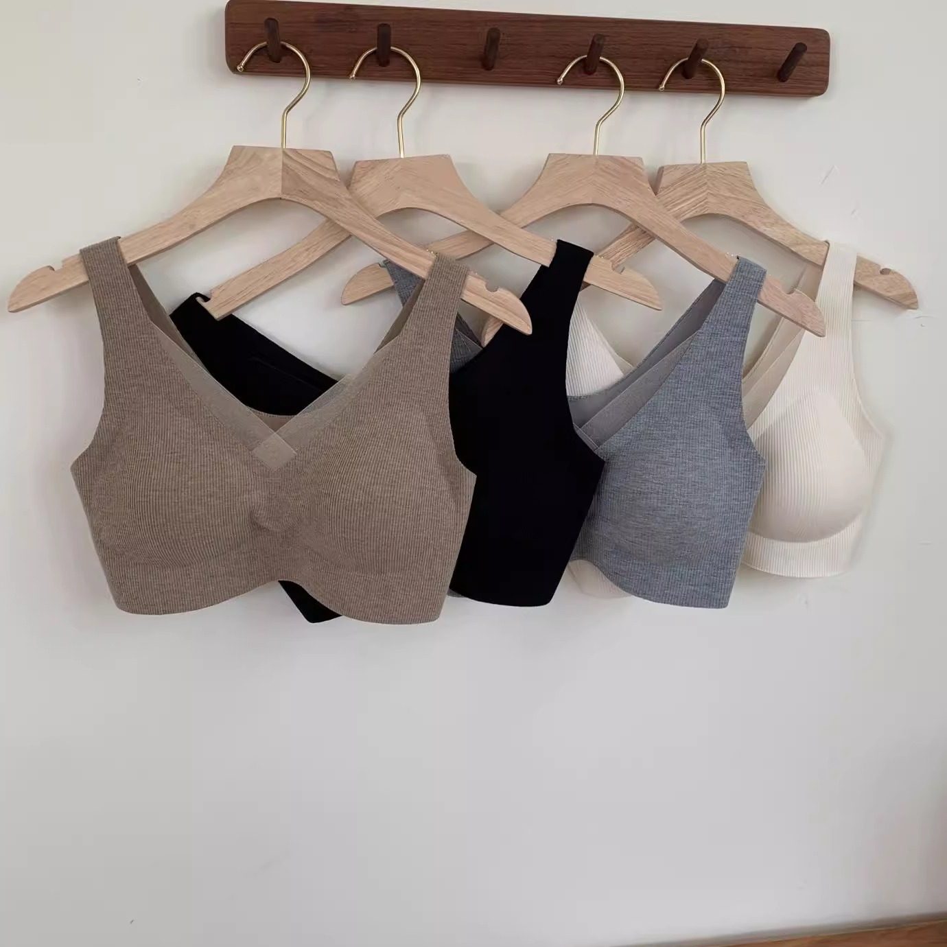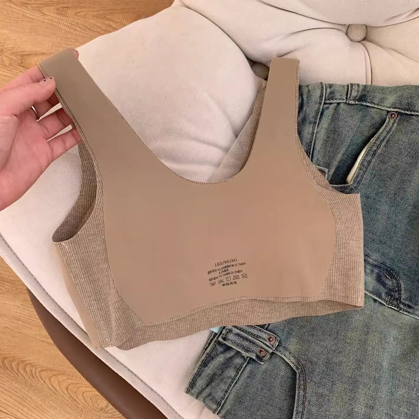 📚 无痕条纹磨毛暖肌背心式内衣软提拉聚拢防下垂舒适无钢圈文胸运动