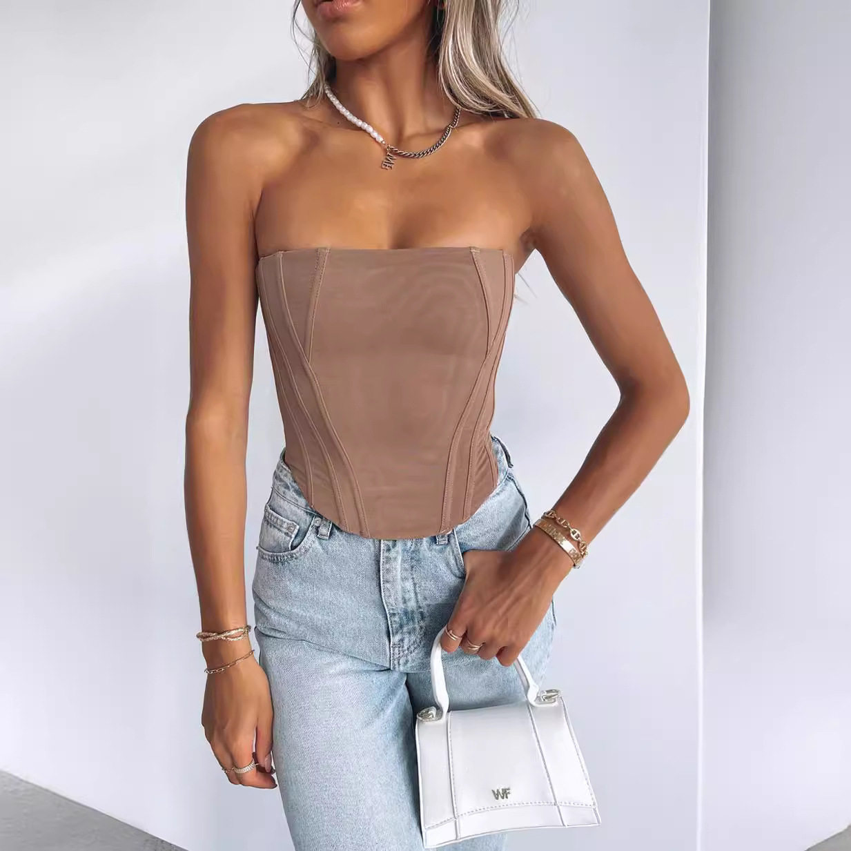 📚 Women fishbone strapless strapless strapless女束身性感小吊带