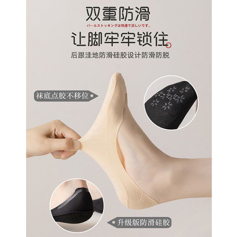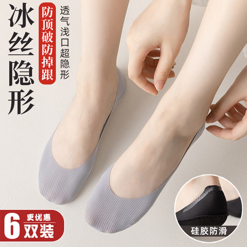 📚 夏季船袜女薄款棉底冰丝袜子新款浅口透气短袜隐形防滑不掉跟袜套