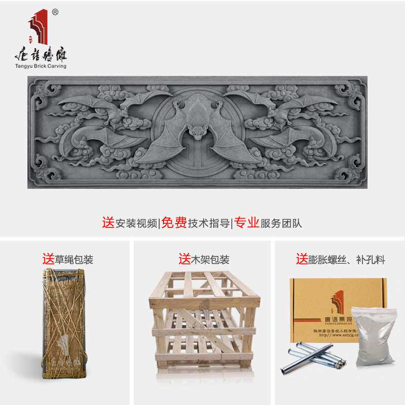 📚 唐语砖雕 仿古砖青砖线条 园林古建墙面装饰30cm瓜瓞绵绵五福捧寿