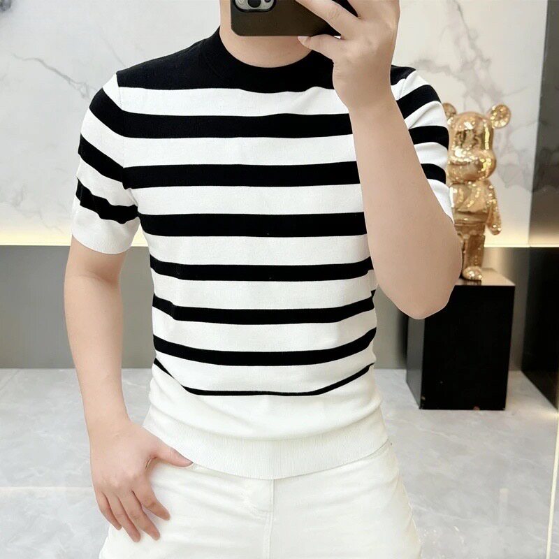 📚 2026早春新款男士短袖毛衣时尚百搭针织半袖打底衫上衣T恤潮M106