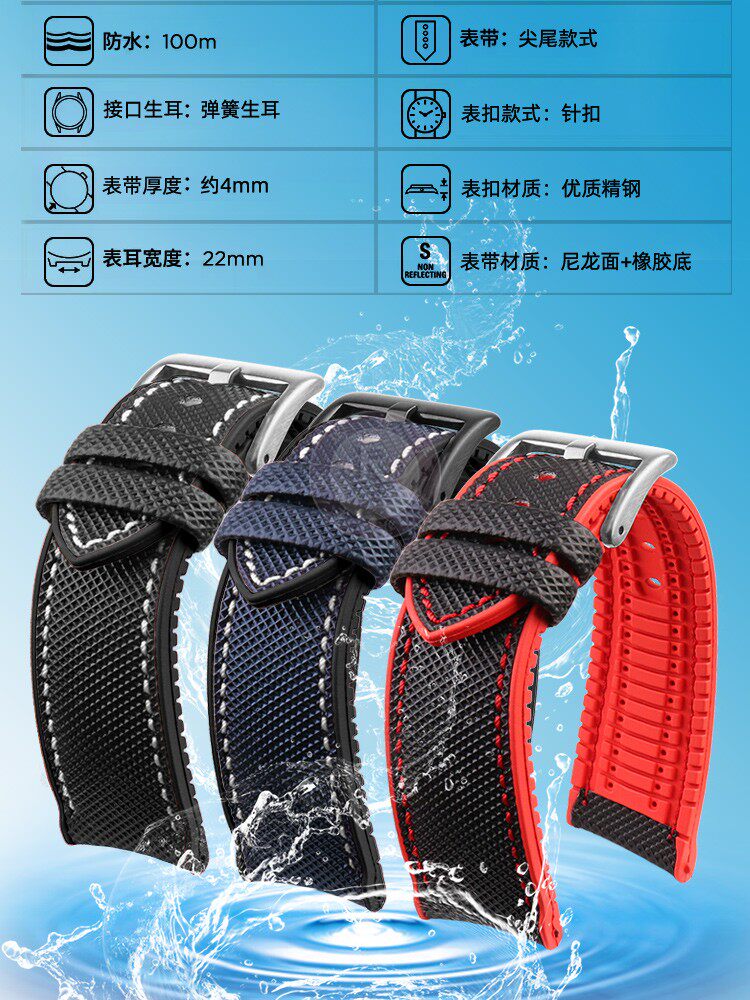 📚 适配Mido美度舵手TV电视M049.526系列尼龙面橡胶底手表带配件22mm