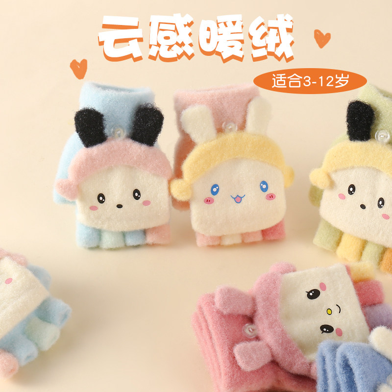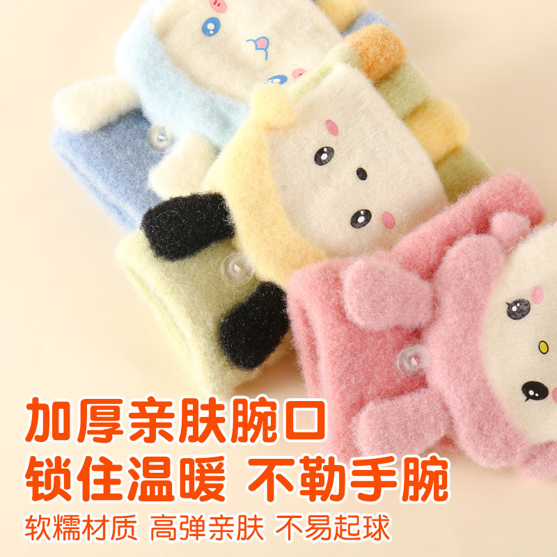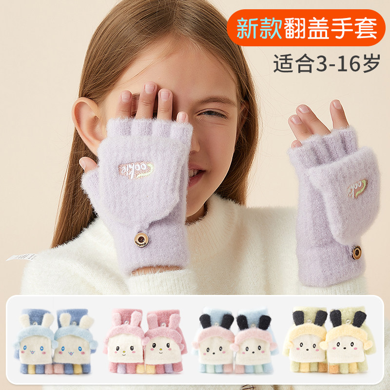 📚 儿童手套女童冬天保暖可爱卡通秋冬季男童小女孩翻盖半指露指写字