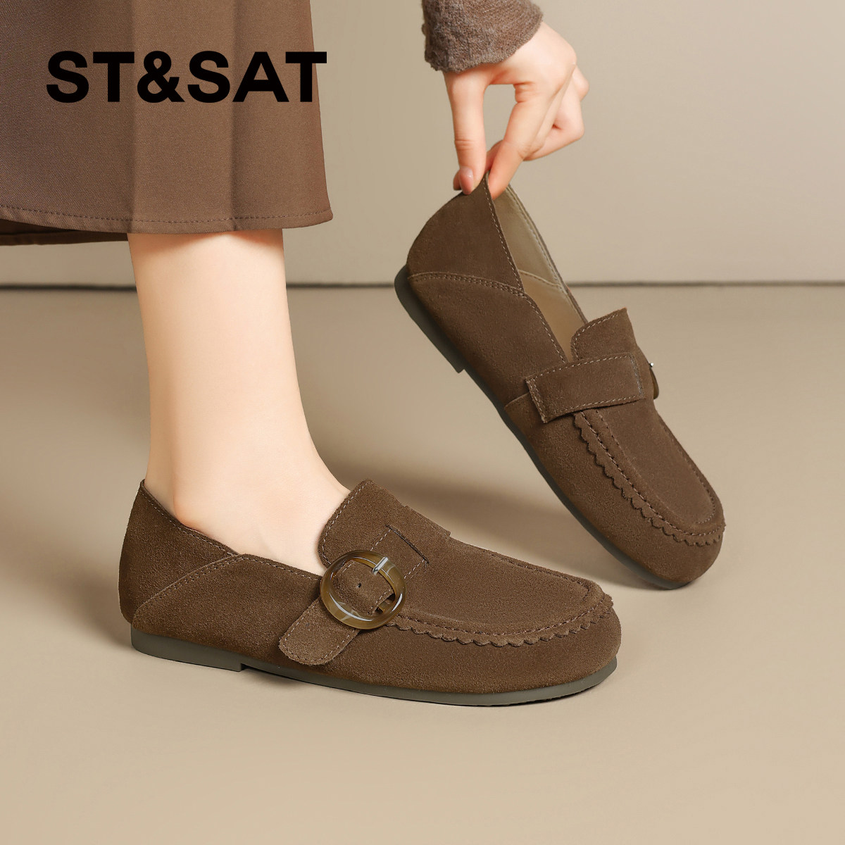 📚 星期六复古真皮软底勃肯鞋女鞋子2025新款秋冬一脚蹬豆豆鞋单鞋子