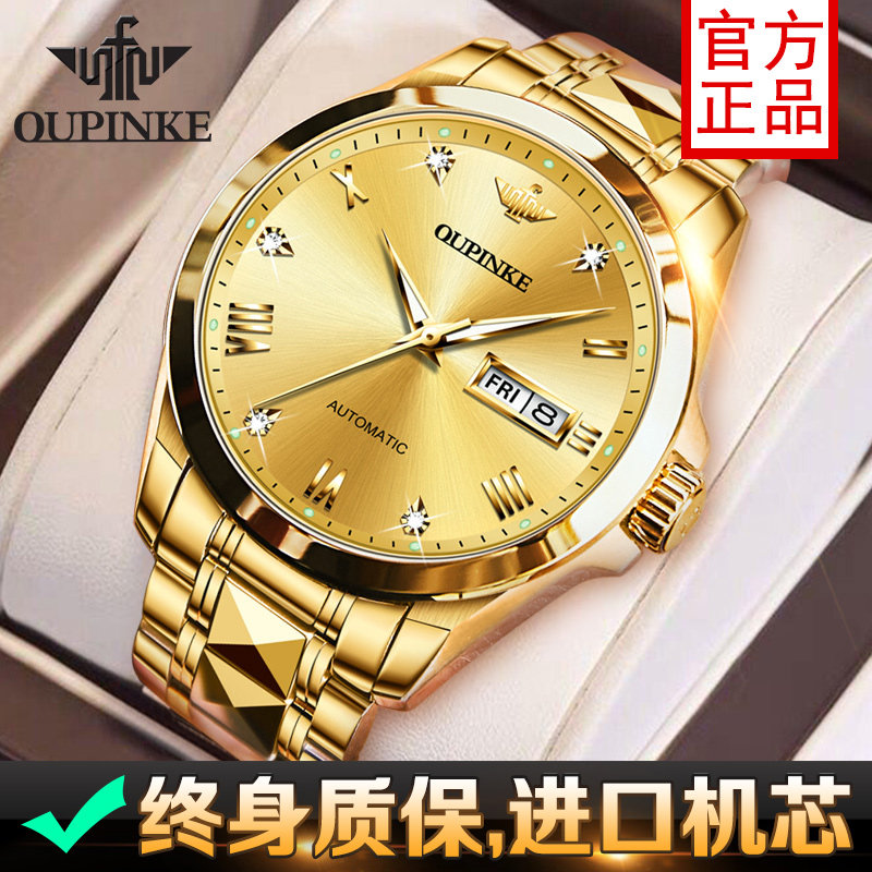 📚 瑞士认证正品牌进口芯男士手表机械表全自动男款18k黄金色名十大