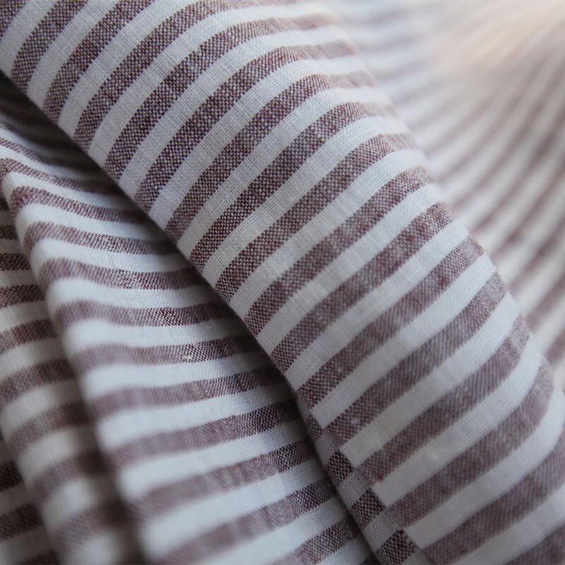 📚 亚麻柔软有筋骨水洗纯麻色织条细纹布料面料 棕咖色幅宽280cm