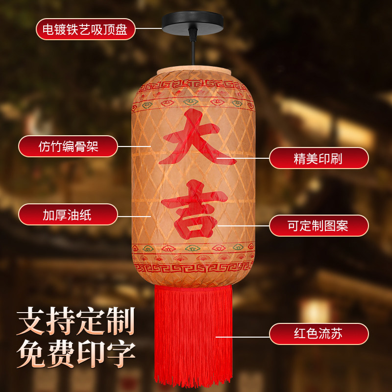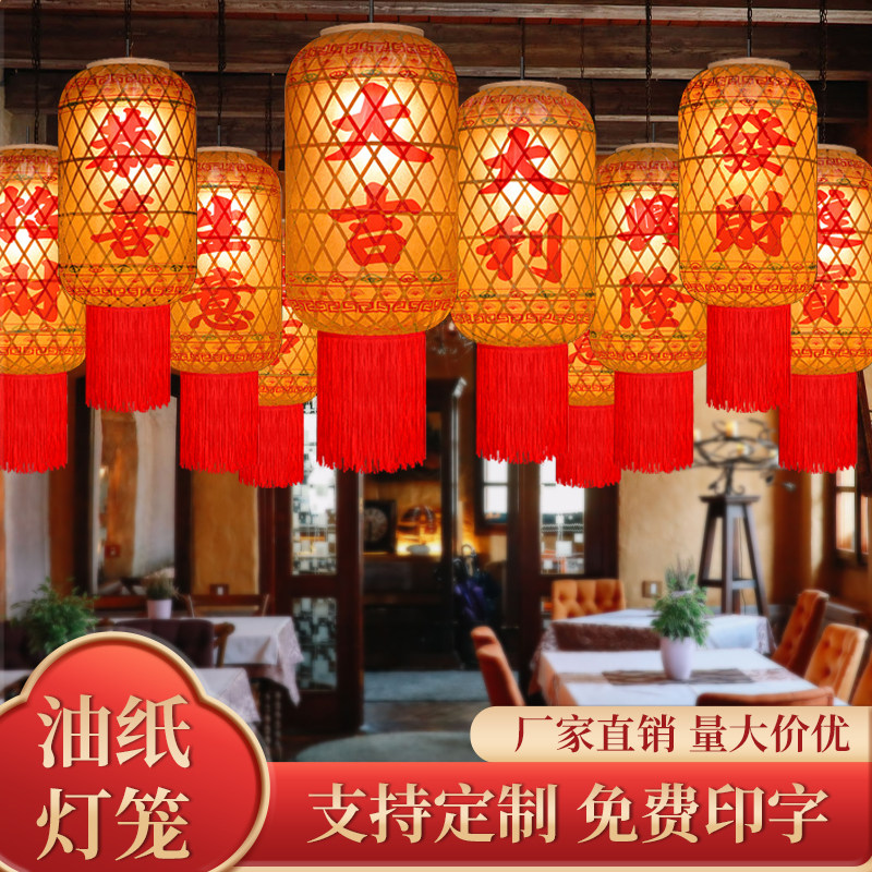 📚 油纸竹编灯笼新款2026年中国风户外古风餐饮店挂饰定制连串灯笼