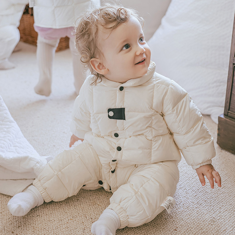 📚 宝宝三防羽绒服连体衣冬季保暖加厚鸭绒防风婴幼儿哈衣爬服外出服