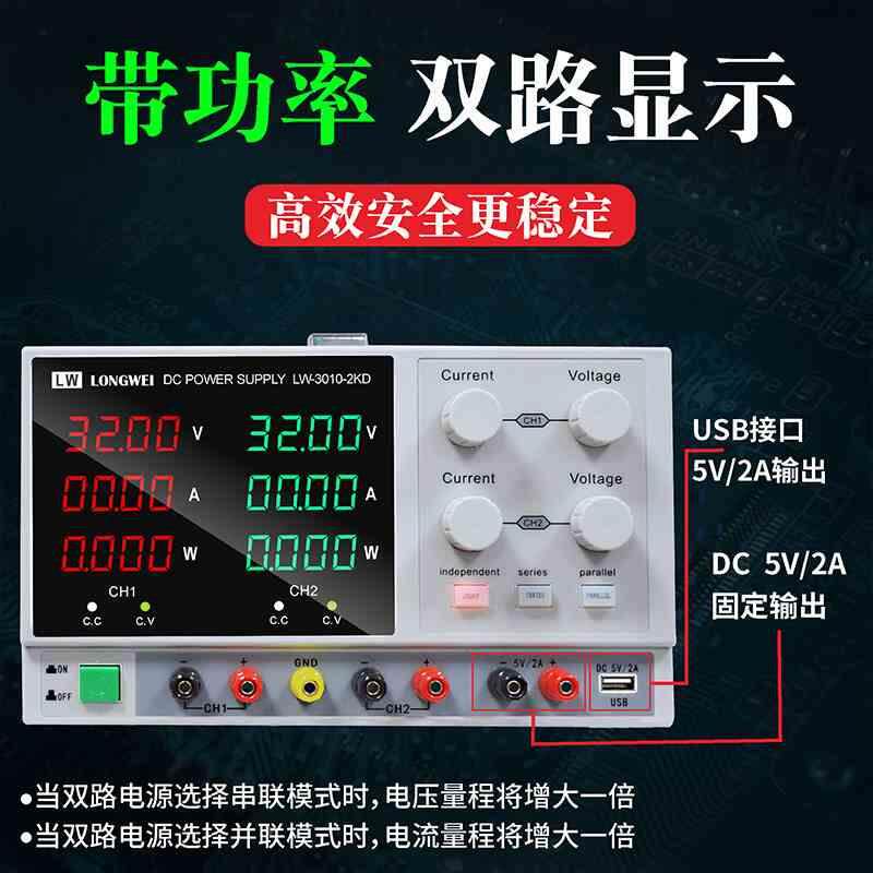 📚 龙威三路直流稳压电源30V10A/5A双路可调LW-3010-2KD恒流数显电源