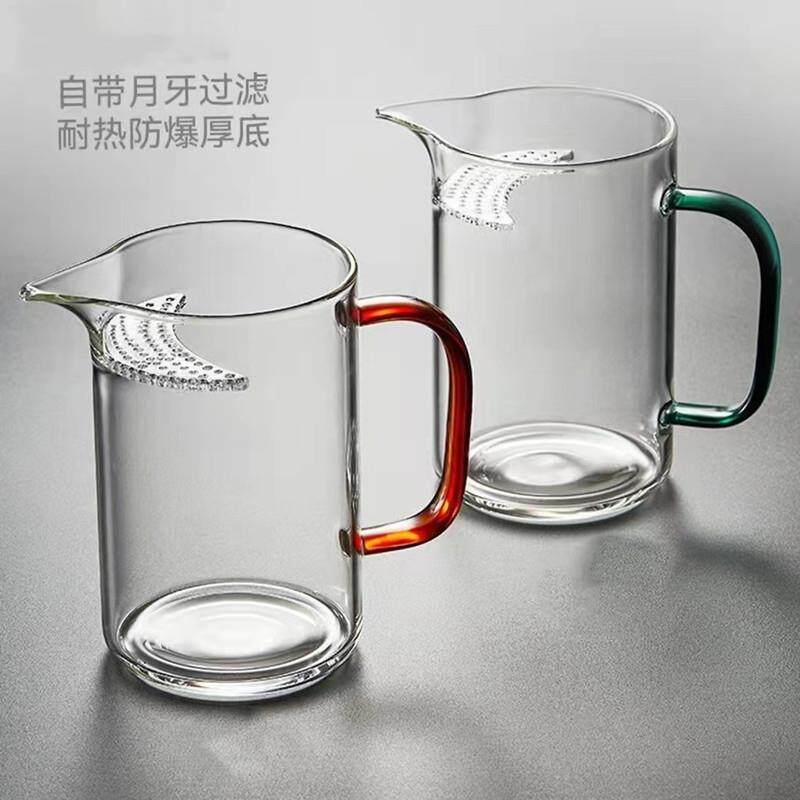 📚 绿茶茶具厚底玻璃公道杯带茶漏一体月牙过滤泡茶杯加厚分茶器茶海