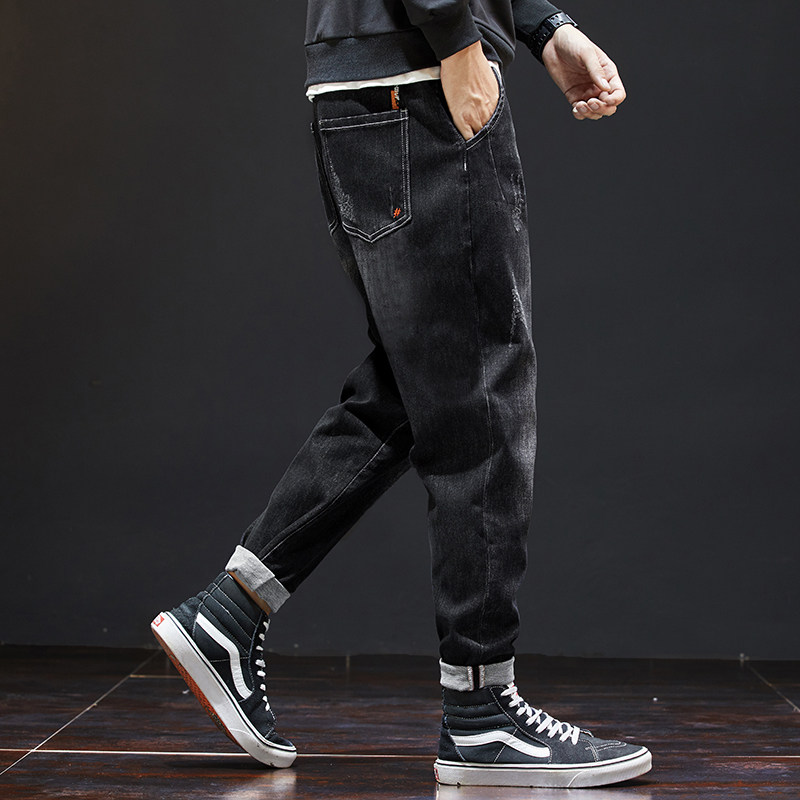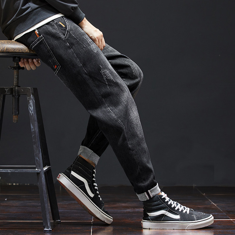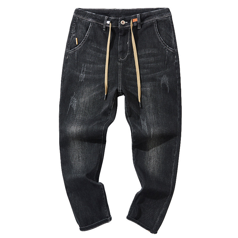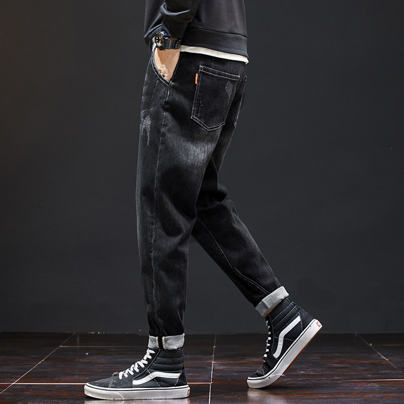 📚 秋冬季黑色牛仔裤男青年宽松长裤弹力大码休闲百搭男士小脚哈伦裤