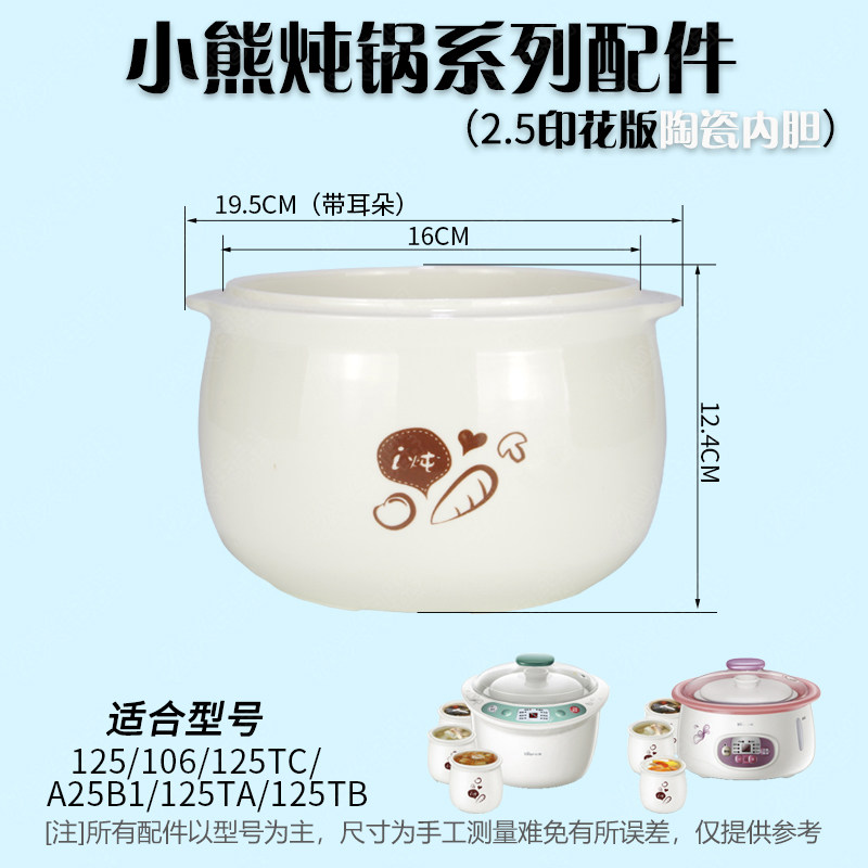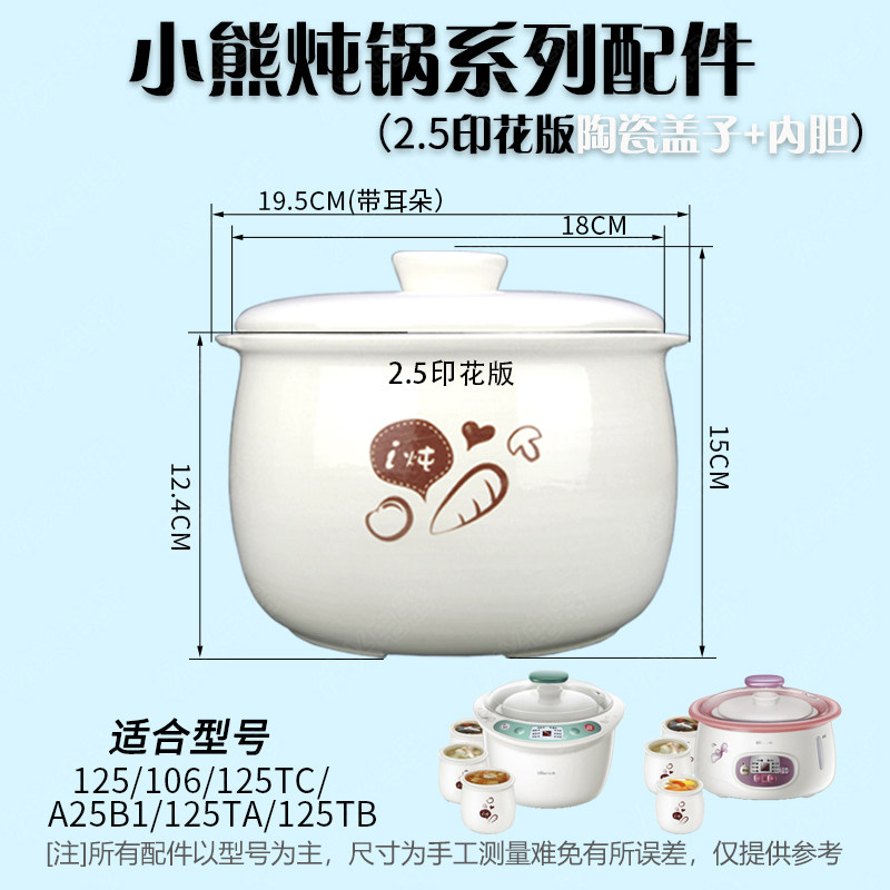 📚 小熊隔水炖DDZ125TA/152/106/A25B1/125TB陶瓷盖子内胆2.5L配件